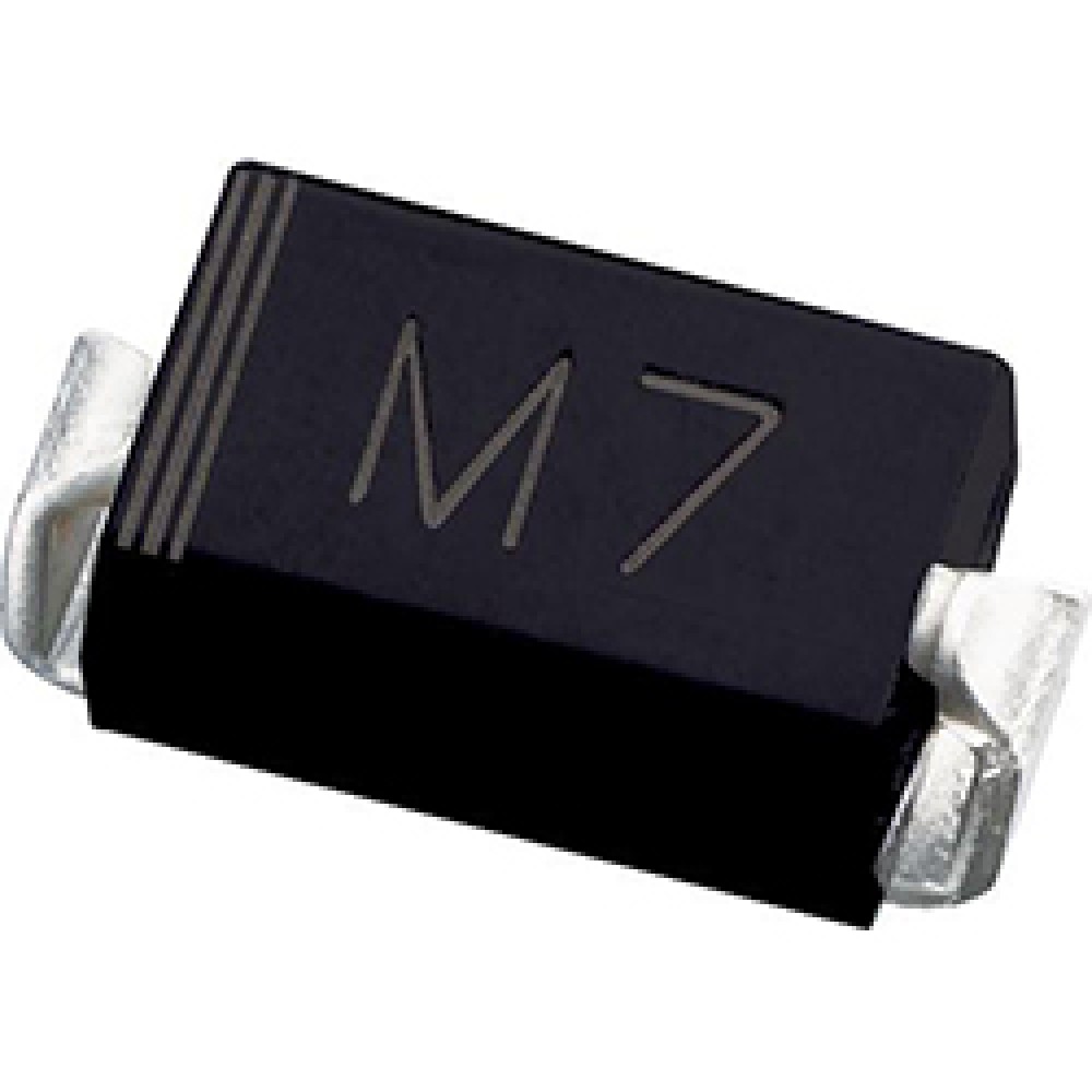 Діод 1N4007 у корпусі SMA (DO-214AC) — це випрямний діод загального призначення для поверхневого монтажу. Завдяки високій здатності до імпульсного струму і низькому зворотному струму, він є надійним компонентом для захисту схем у багатьох електронних пристроях.