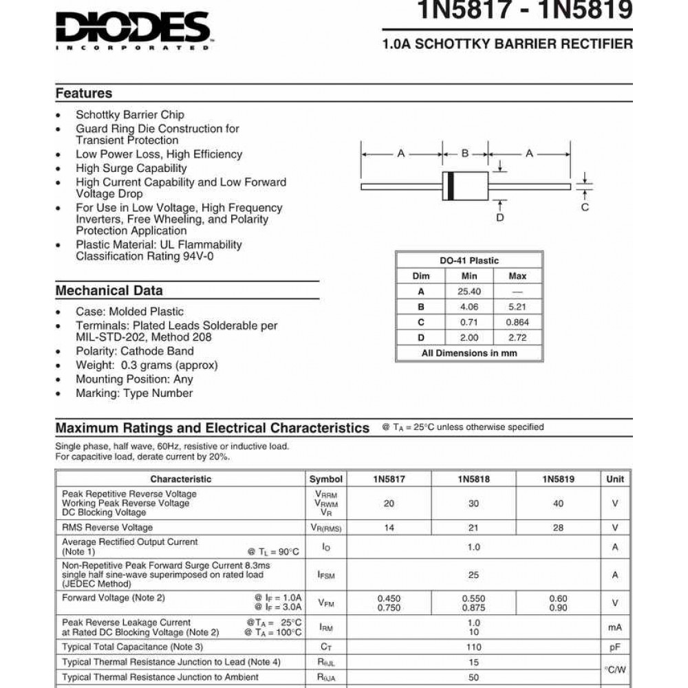 Datasheet 1N5819 pdf