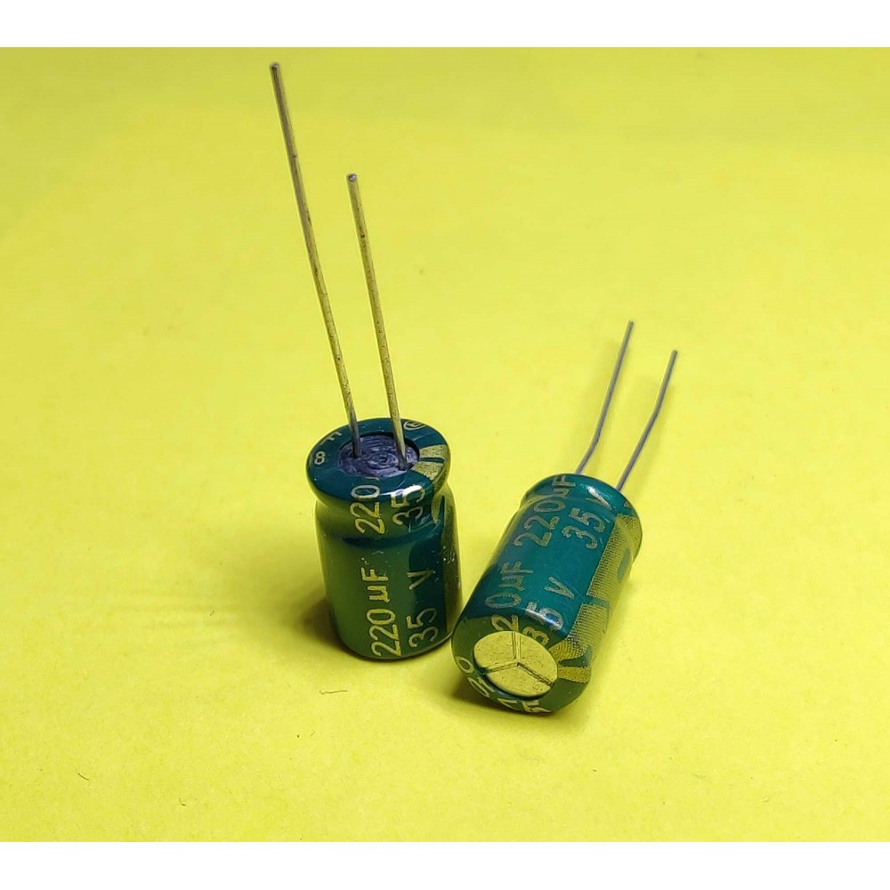 Його номінальна напруга 35В та ємність 220 мкФ забезпечують ефективну фільтрацію пульсацій та стабільну подачу електроживлення у низьковольтних пристроях.