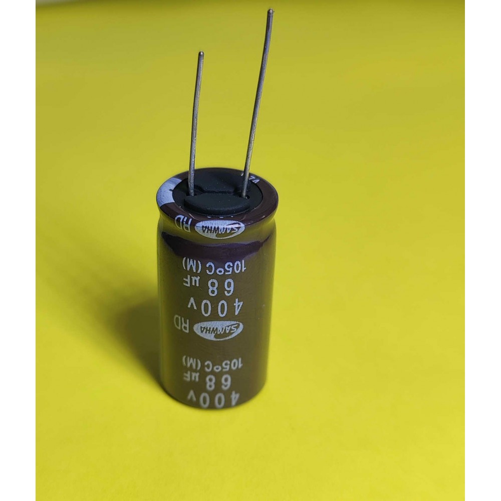 Електролітичний конденсатор 68 мкФ 400В 105°C у корпусі 18×35 мм є високовольтним компонентом, який застосовується для фільтрації пульсацій, згладжування напруги та стабілізації електроживлення у високовольтних електронних пристроях.