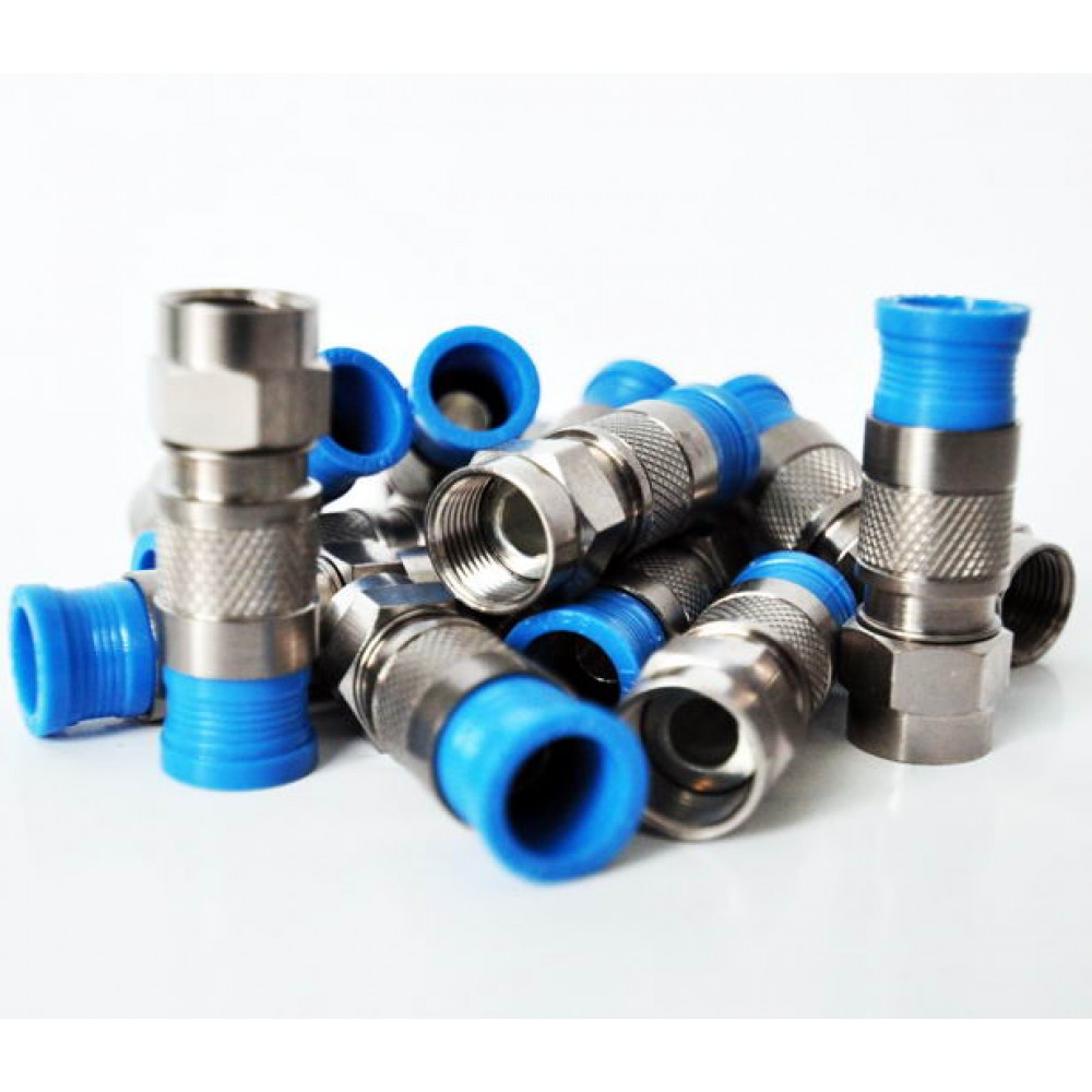 Штекер F для кабеля RG-6, компресійний (синій), мідь