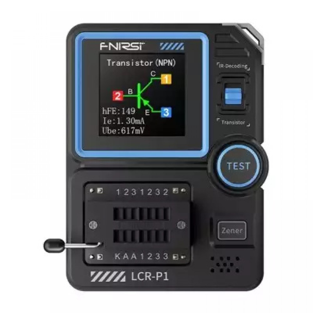 FNIRSI LCR-P1, LCR тестер, тестер електронних компонентів, тестер транзисторів, тестер MOSFET, тестер IGBT, тестер діодів, тестер стабілітронів, LCR meter, компонентний тестер, тестер радіодеталей, ZIF тестер, портативний LCR тестер, цифровий тестер компонентів