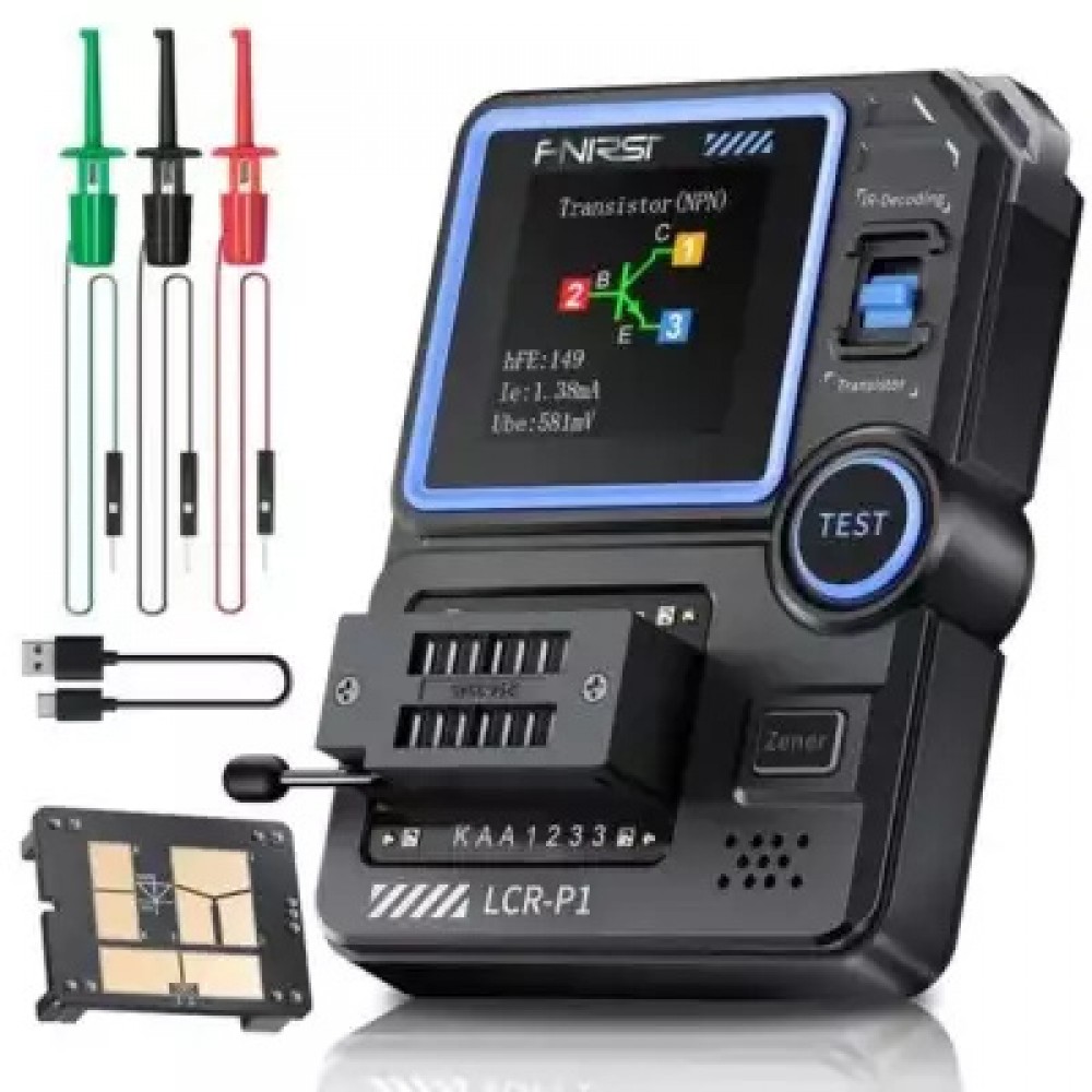 FNIRSI LCR-P1 - портативний багатофункціональний тестер електронних компонентів з автоматичним визначенням типу елемента та вимірюванням його параметрів. Пристрій поєднує функції LCR метра та компонентного аналізатора, оснащений універсальним ZIF сокетом, кольоровим TFT дисплеєм та вбудованим акумулятором з зарядкою через USB. Підходить для сервісних центрів, лабораторій та радіоаматорського використання.