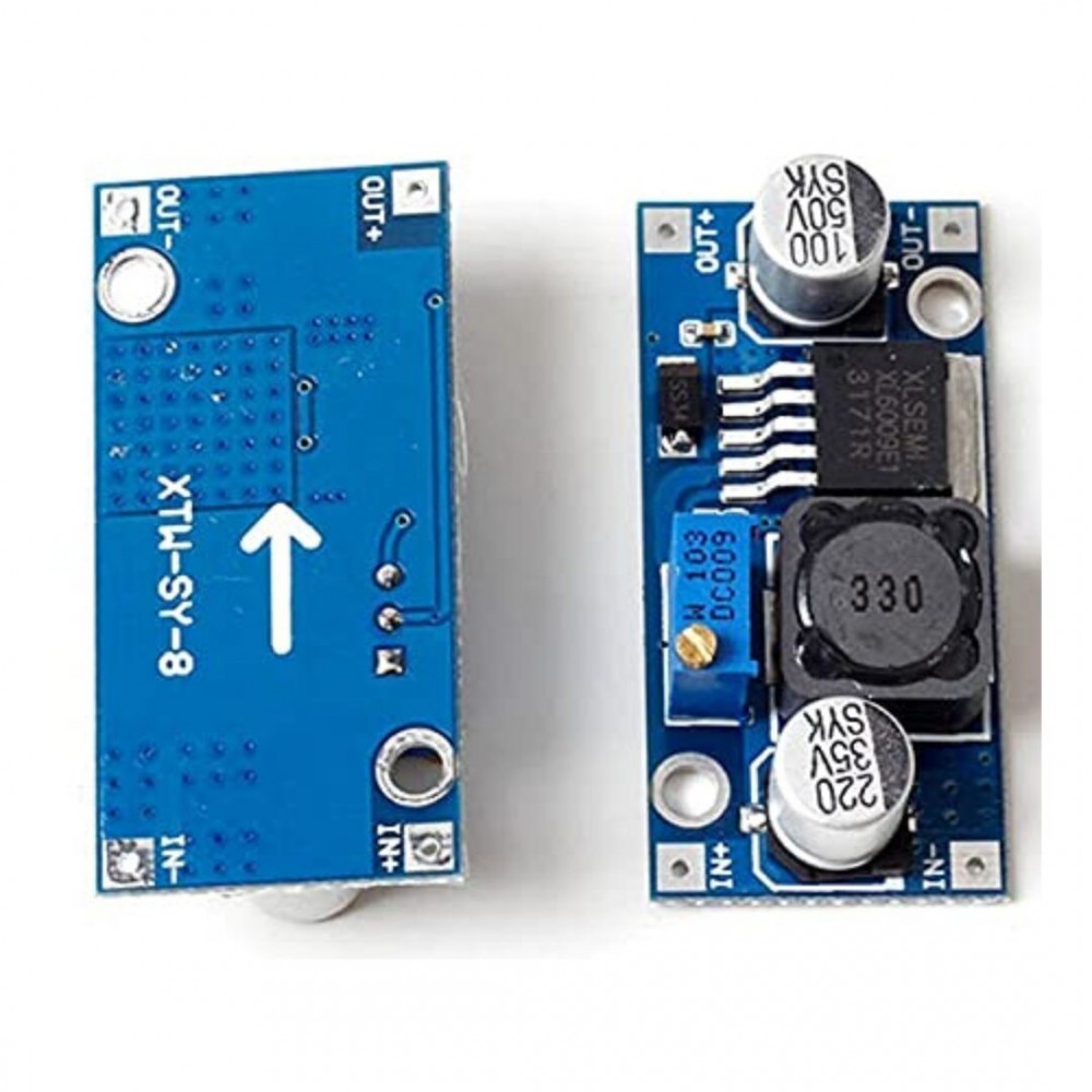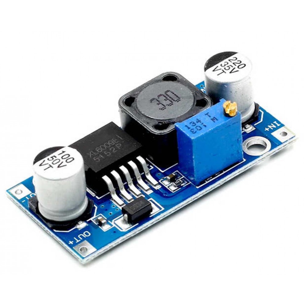 - Підвищувальний DC-DC перетворювач на основі чіпа XL6009. Вихідна напруга модуля регулюється підстрочним резистором.