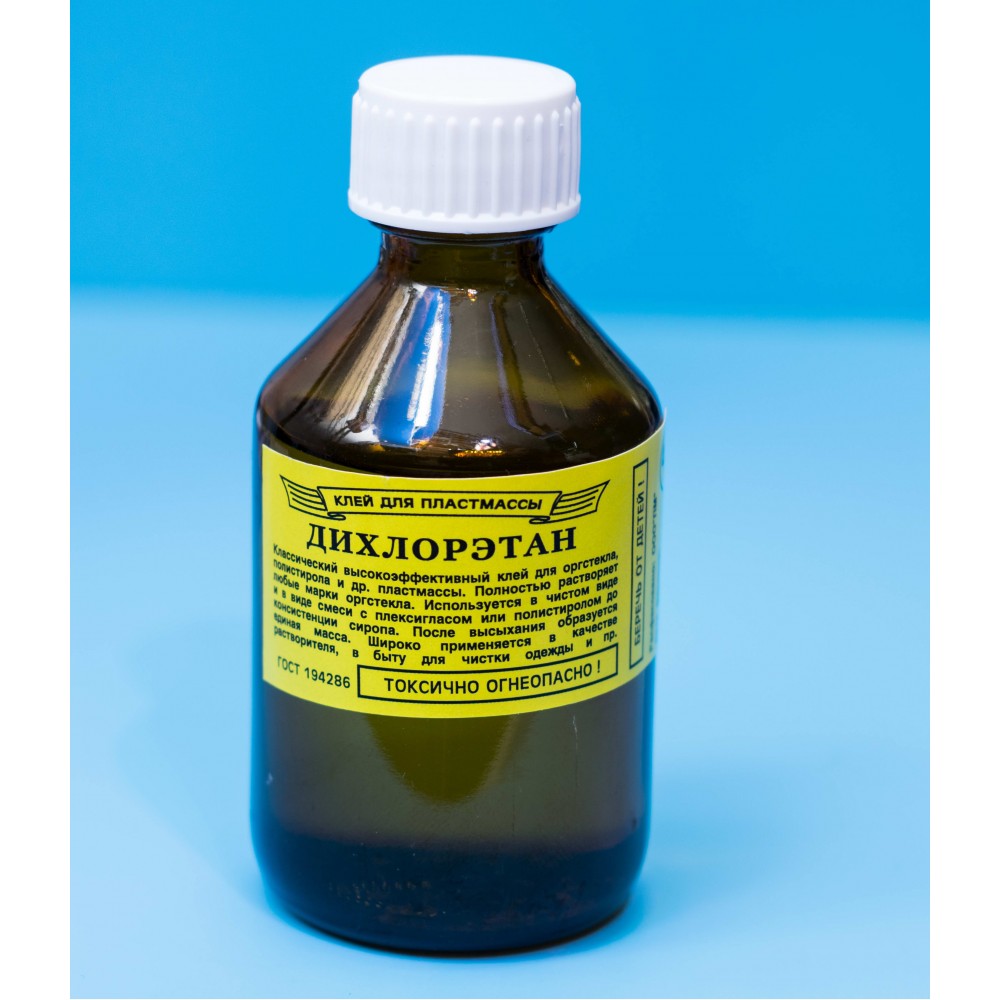 Дихлоретан 60 г — клей-розчинник для пластмас, оргскла та ПВХ Опис Дихлоретан (1,2-дихлоретан) - прозора, безбарвна, летка рідина з характерним солодкуватим запахом, що нагадує хлороформ. Вона широко використов... Читати далі...