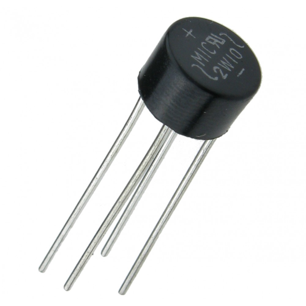2W10, діодний міст, випрямляч змінного струму, високонадійний діод, компактний випрямляч, 2А діодний міст, електронний компонент.