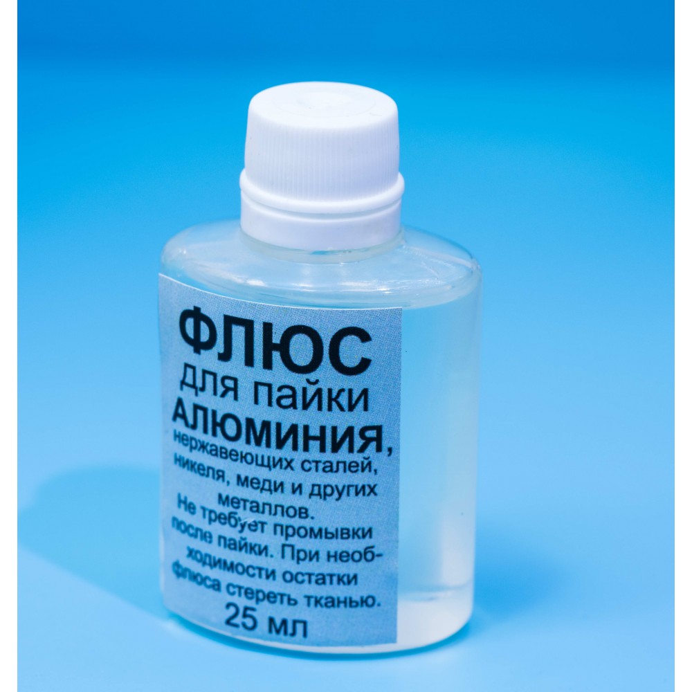 Флюс АЛЮМ 25 мл - активний рідкий флюс, призначений для пайки алюмінію, нержавіючої сталі, нікелю, міді та їх сплавів. Забезпечує ефективне видалення оксидних плівок та покращує змочування припоєм, що сприяє надійному з'єднанню деталей. Підходить для ручної пайки та лудіння конструкційних вузлів і з'єднань.