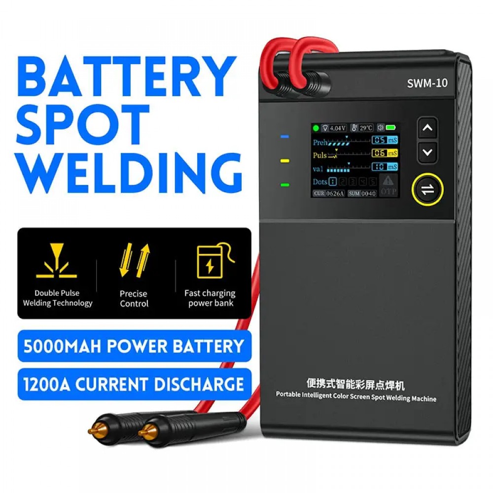 Портативний ручний апарат точкового зварювання SWM-10 - це ефективний, зручний і легкий у транспортуванні інструмент точкового зварювання.Технологія подвійного імпульсного точкового зварювання використовується, щоб зробити зварювання більш стабільним і надійним, а також має функцію PowerBank 5В/2,1А.