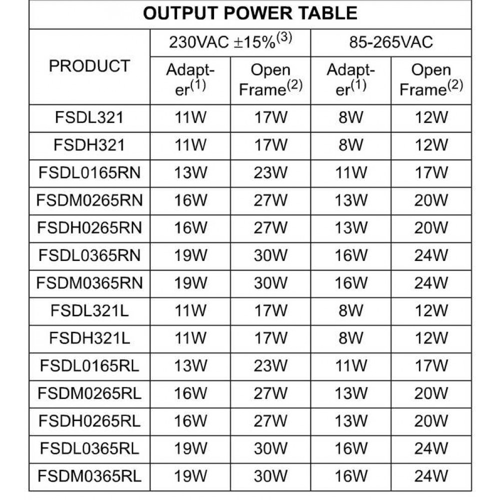 FSDM0265R використовується в адаптерах, блоках живлення для побутової техніки, відеопристроях (VCR, DVD), сканерах та інших пристроях, що потребують високоефективного і надійного управління живленням.