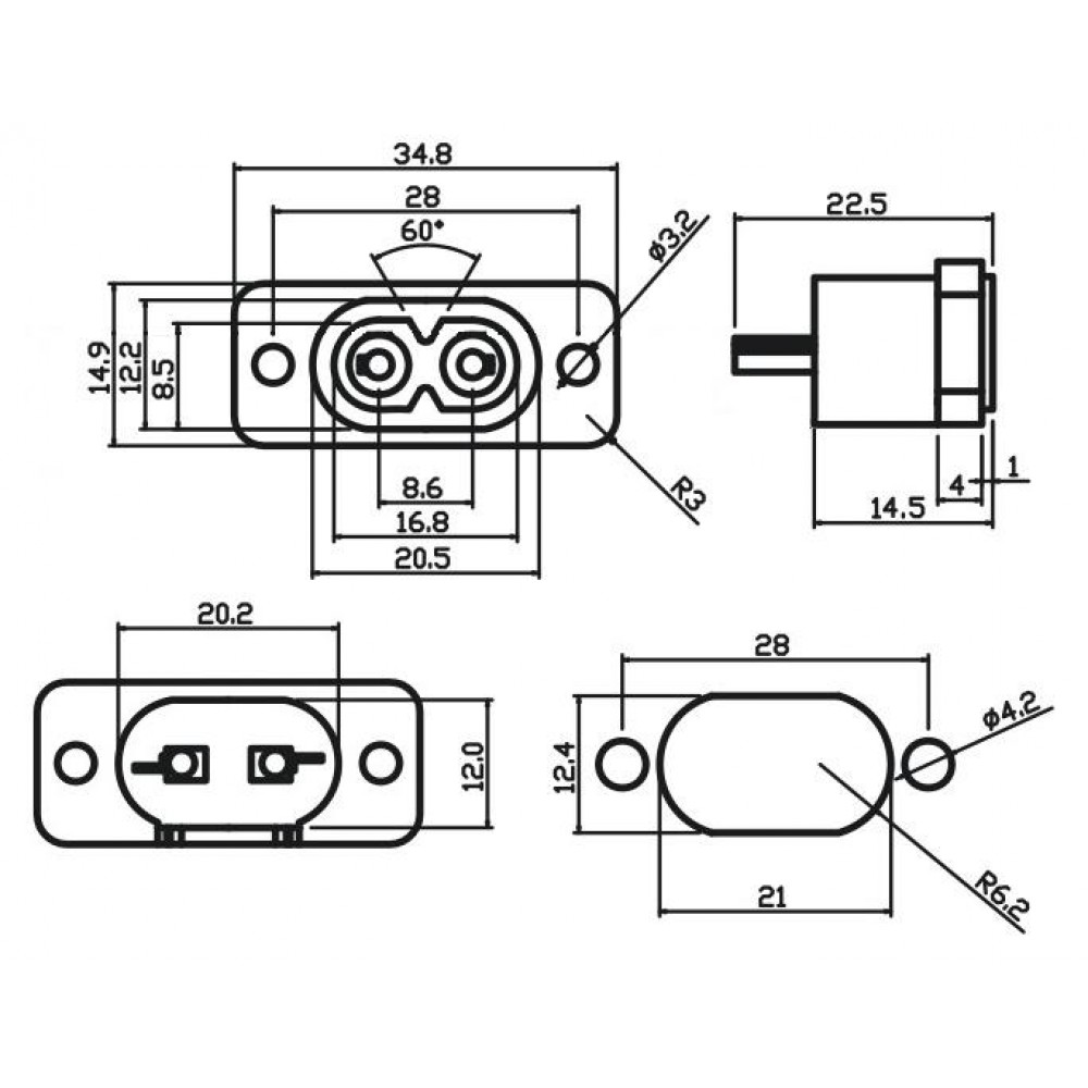 - Монтажні отвори: діаметр 4.2 мм.