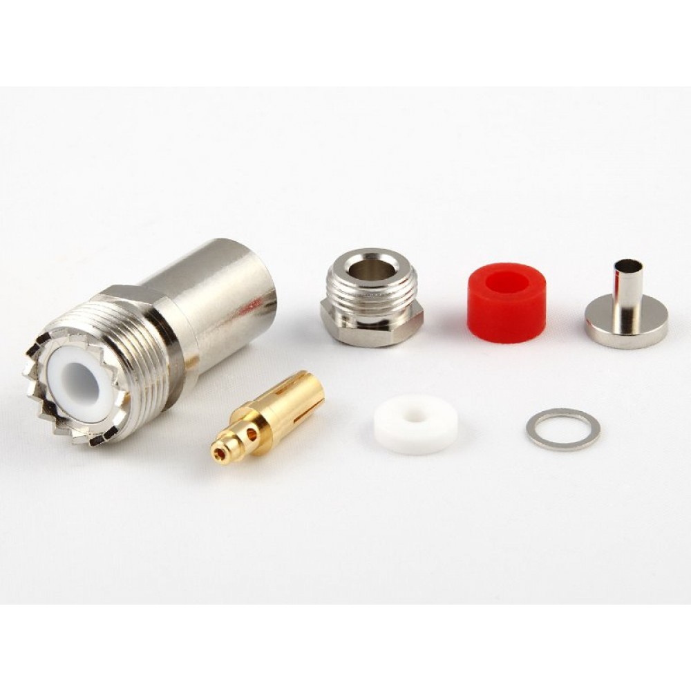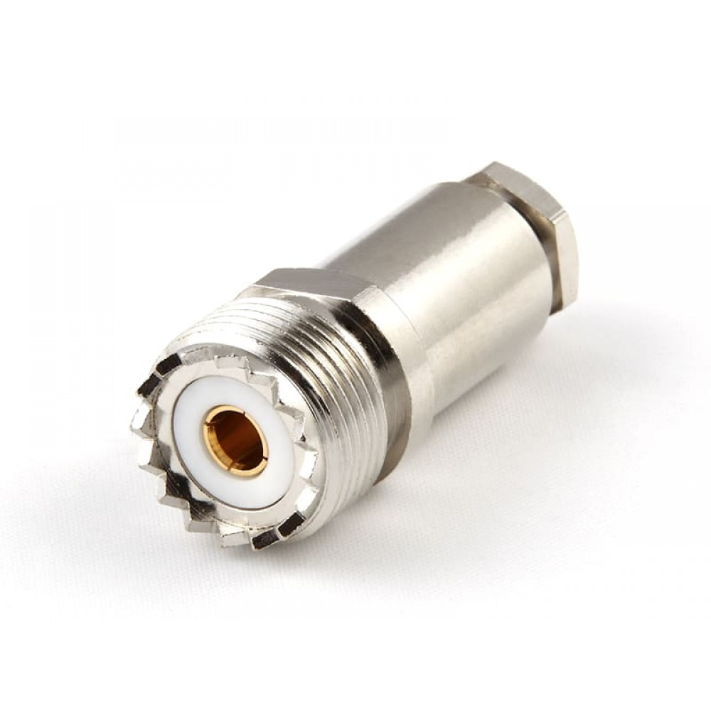 Гніздо UHF для кабелю RG58 — коаксіальний роз'єм, призначений для передачі радіочастотних сигналів. Використовується для з'єднання антен, радіостанцій та іншого обладнання з коаксіальними кабелями типу RG58. Роз'єм відомий своєю надійністю та забезпечує стабільний сигнал у діапазоні частот до 300 МГц, що робить його ідеальним вибором для систем радіозв'язку.