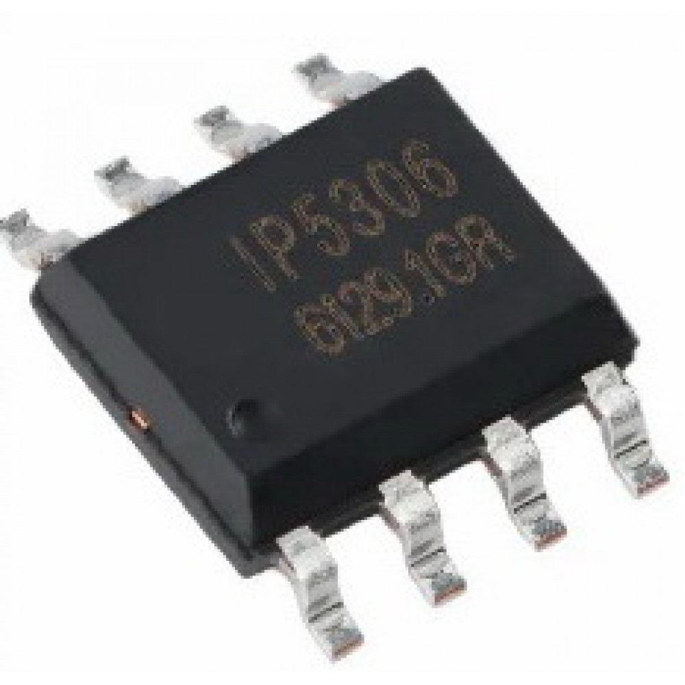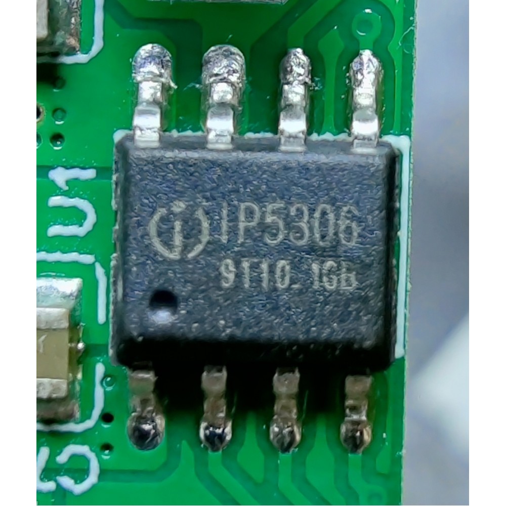 IP5306 — це повністю інтегрована мікросхема управління живленням для портативних зарядних пристроїв та павербанків. Вона об'єднує перетворювач, керування зарядкою літієвих батарей та індикатор стану заряду. IP5306 підтримує зарядний струм до 2.1А та вихідний струм до 2.4А, що робить її ефективною та економічною для застосувань у павербанках.
