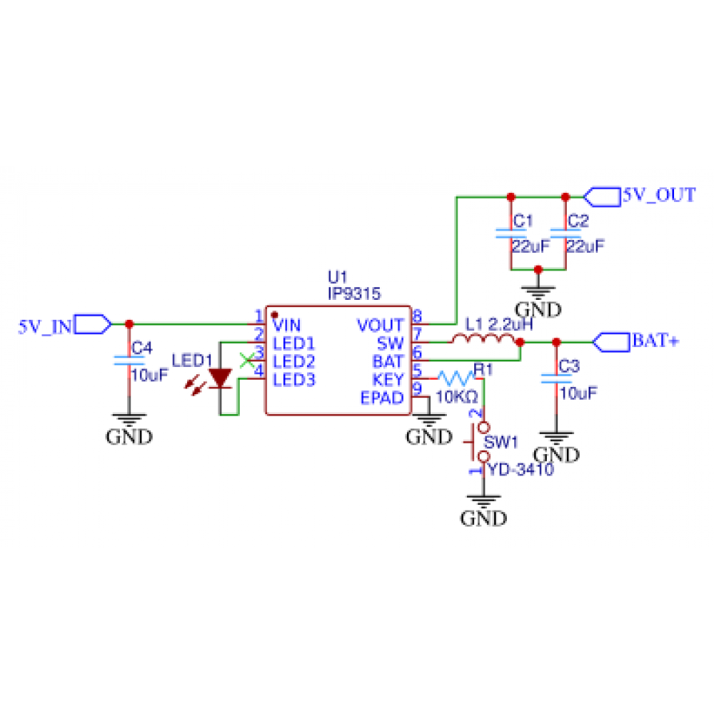 IP9315 — це високоефективний мікроконтролер для управління живленням у павербанках. Мікросхема інтегрує функції зарядки літієвих акумуляторів, перетворення постійної напруги та індикації рівня заряду. Вона забезпечує повне рішення для мобільних пристроїв, підтримуючи одночасну зарядку і розрядку, а також включає систему захисту від перевантажень, коротких замикань та перегріву.