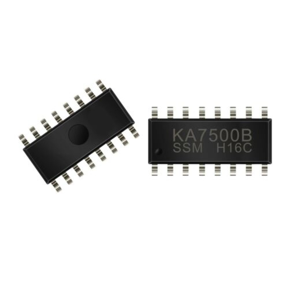 Мікросхема KA7500 у корпусі SOP-16 є високоефективним контролером широтно-імпульсної модуляції (PWM), призначеним для використання в імпульсних джерелах живлення. Вона забезпечує точне регулювання вихідної напруги, захист від перевантаження та стабільну роботу при змінних умовах навантаження.