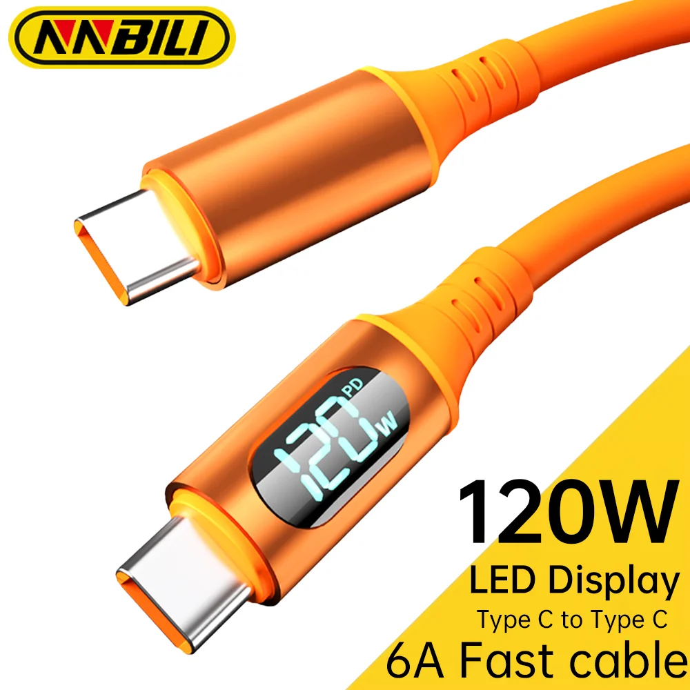 кабель Type-C to Type-C, кабель 120 Вт, кабель із LED-дисплеєм, кабель для швидкої зарядки, USB Type-C, 6A кабель, рідкий силікон, кабель для ноутбука.