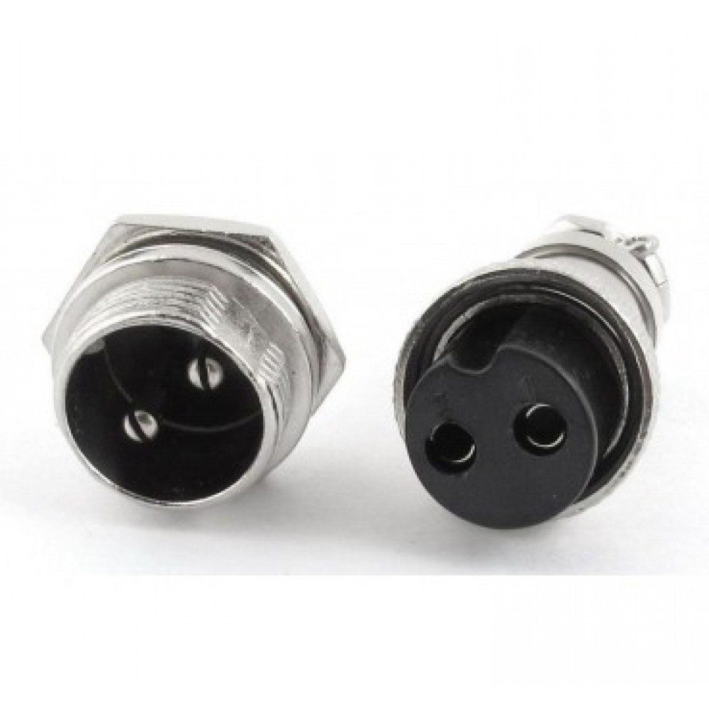 Комплект конекторів GX16 2pin (штекер + розетка) — це промислове кругле з’єднання з різьбовою фіксацією, призначене для передачі живлення або сигналів. Розетка має панельне кріплення (bulkhead), що ідеально підходить для корпусного монтажу в приладах, блоках живлення, інструментах тощо.