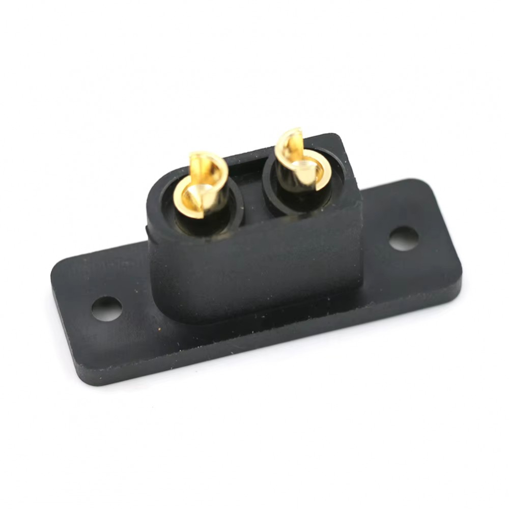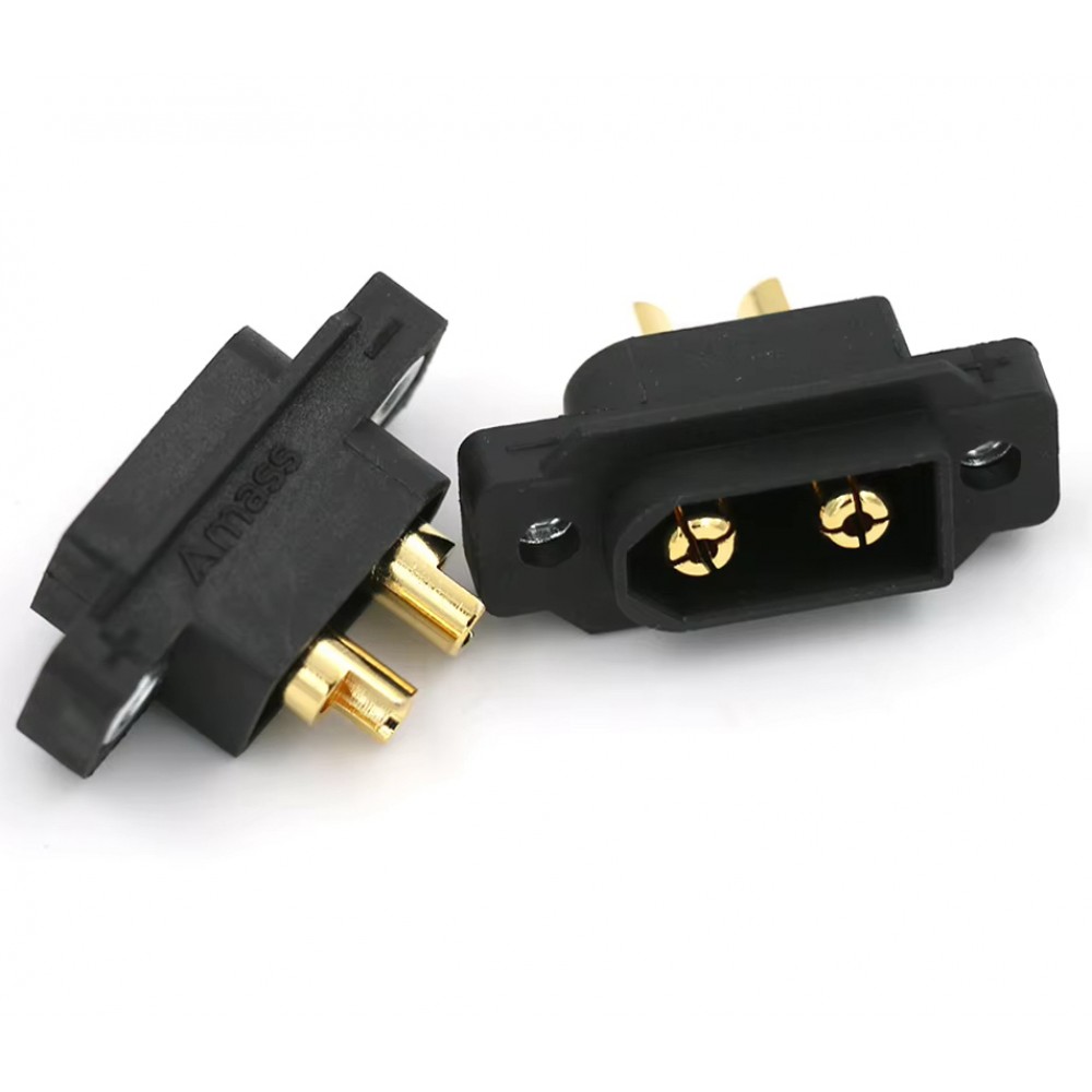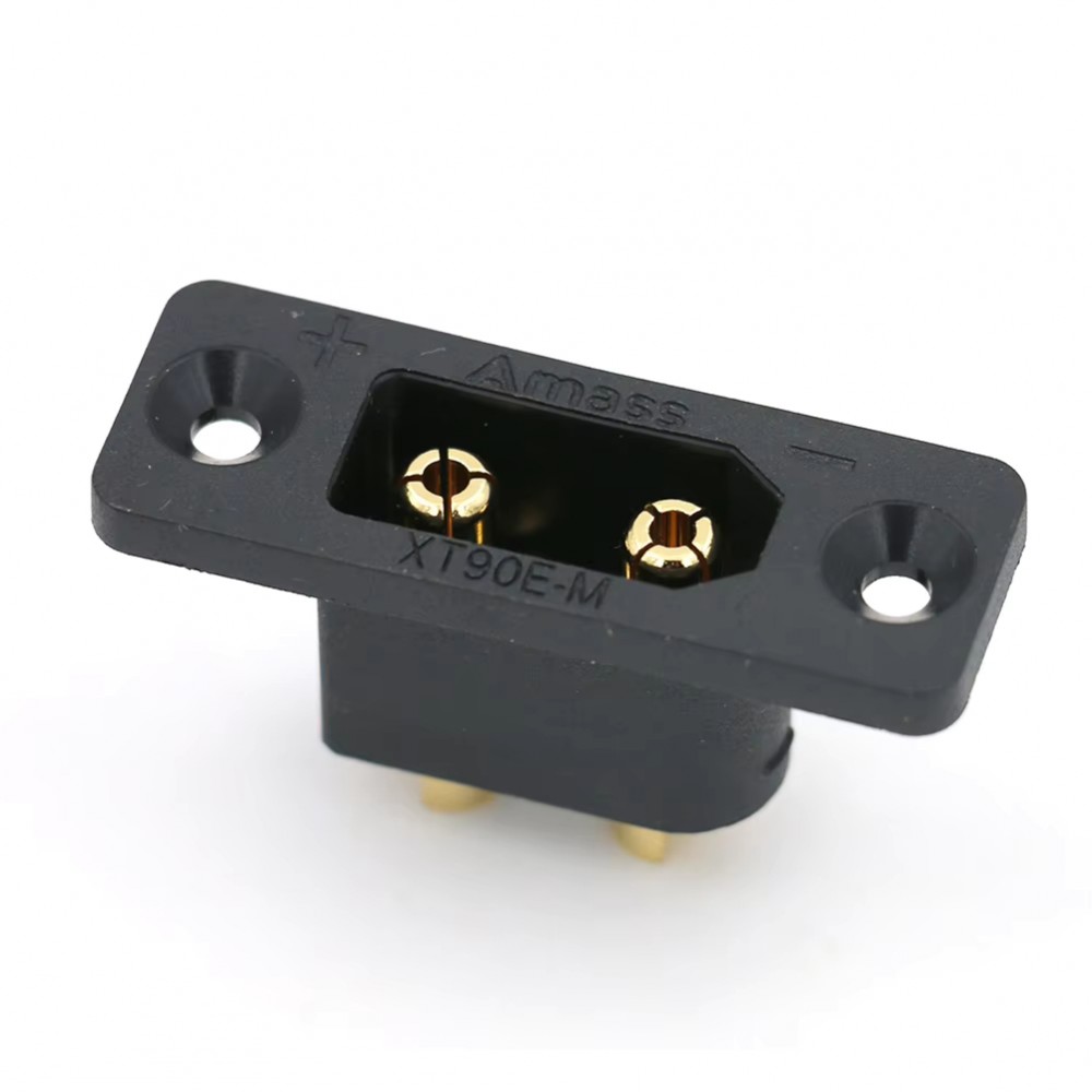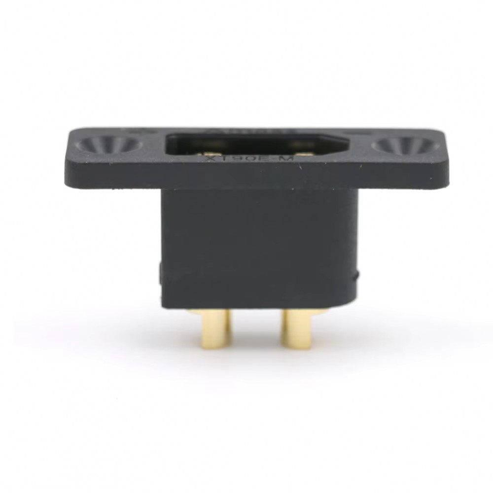 XT90E-M, панельний конектор, високострумовий роз'єм, акумуляторний конектор, XT90 роз'єм, роз'єм для дронів, електровелосипедний роз'єм, моделі та RC, конектор для акумулятора, високий струм, низький опір, надійне з'єднання, електротранспорт, монтажний роз'єм, гвинтове кріплення, провідність, золоті контакти, стійкість до температури, роз'єм для великих струмів, нейлоновий корпус.