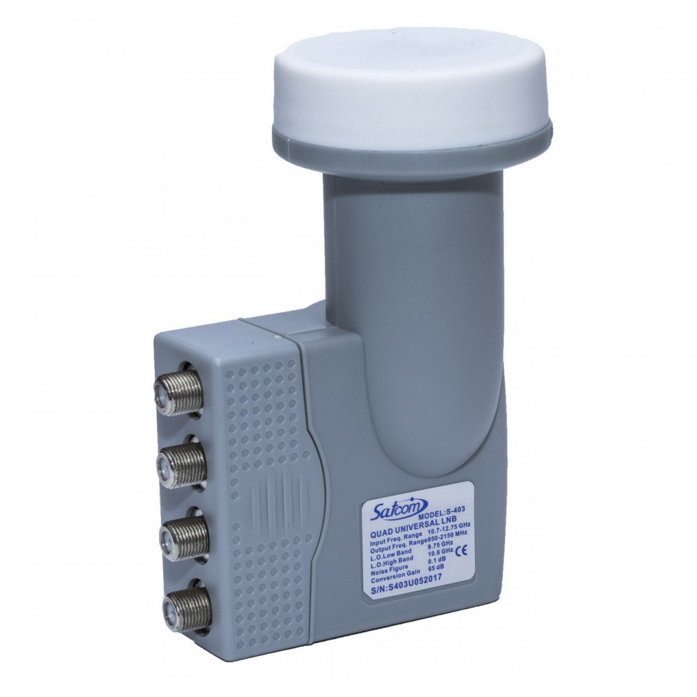 Конвертор Quadro SATCOM S-403 використовується для прийому супутникових телевізійних і радіосигналів, їх перетворення і передачі на ресивер для подальшого перегляду або прослуховування. Підходить для використання в домашніх системах супутникового телебачення.