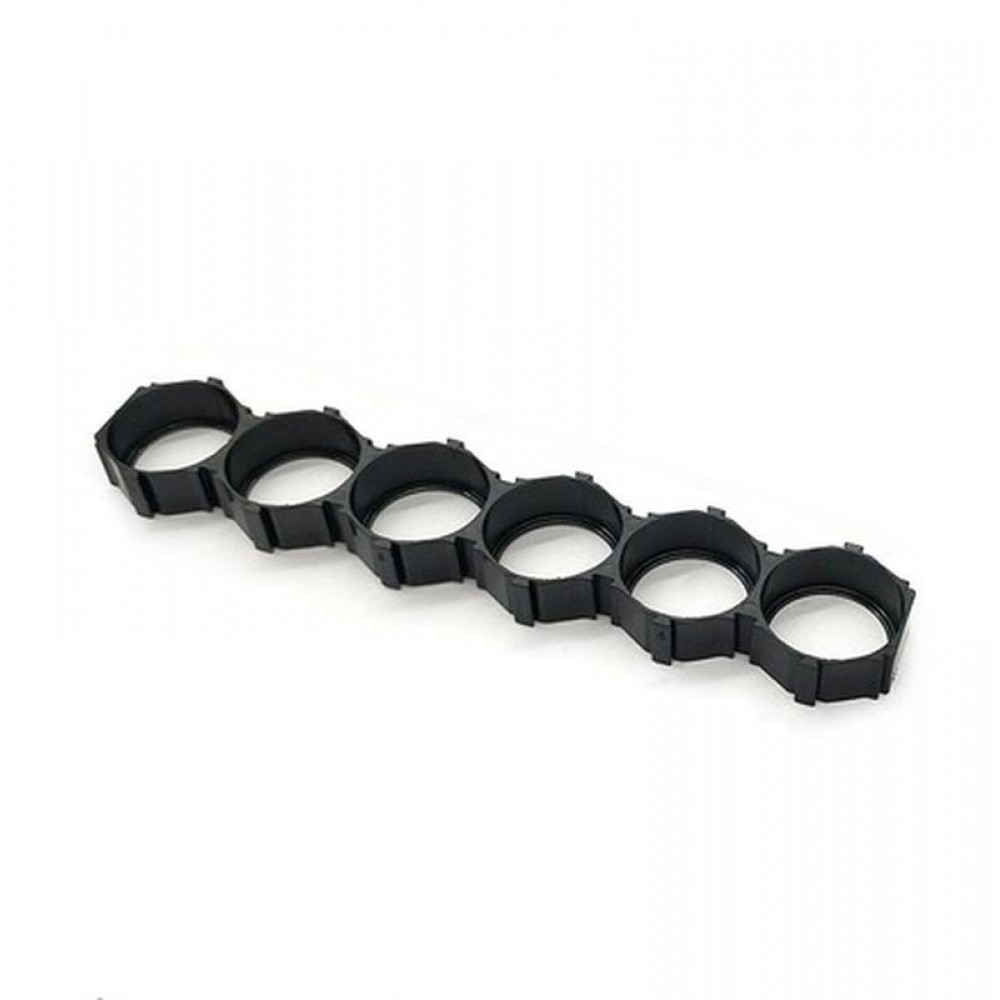 Тримач для шести літій-іонних акумуляторів типу 18650. Використовується для надійного кріплення та фіксації акумуляторів у пристроях. Забезпечує безпечне та зручне з'єднання акумуляторів.