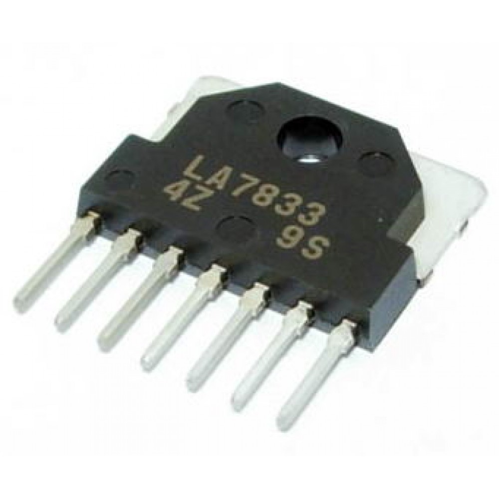 LA7833 - лінійна мікросхема для вертикального відхилення у великих кольорових телевізорах. Завдяки вбудованій системі захисту від перегріву та насосу для підкачки, вона забезпечує високу ефективність при мінімальній кількості зовнішніх компонентів.