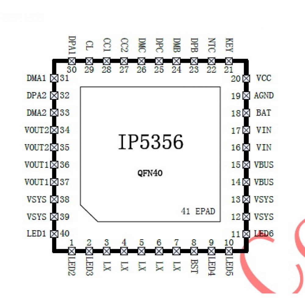 IP5356-188-BZ, IP5356-LED-BZ, Power Bank, SOC для мобільного живлення, цифрова індикація заряду, LED індикація, QC2.0, QC3.0, PD3.0, PPS, SCP, FCP, AFC, мобільний зарядний пристрій, захист від короткого замикання.