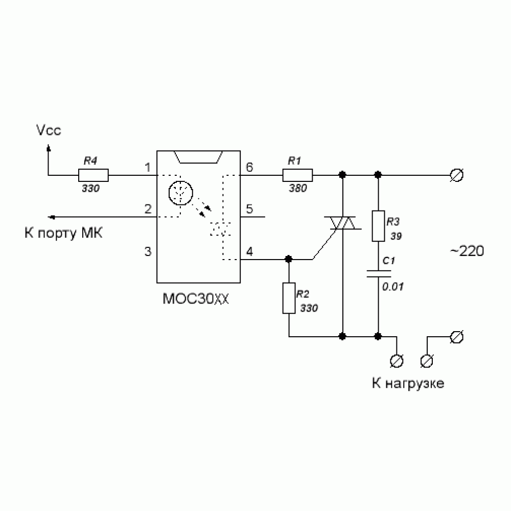 купити MOC3023M, MOC3023M ціна, оптопара триакова, оптопара для AC комутації, драйвер симістора, оптрон для індуктивного навантаження