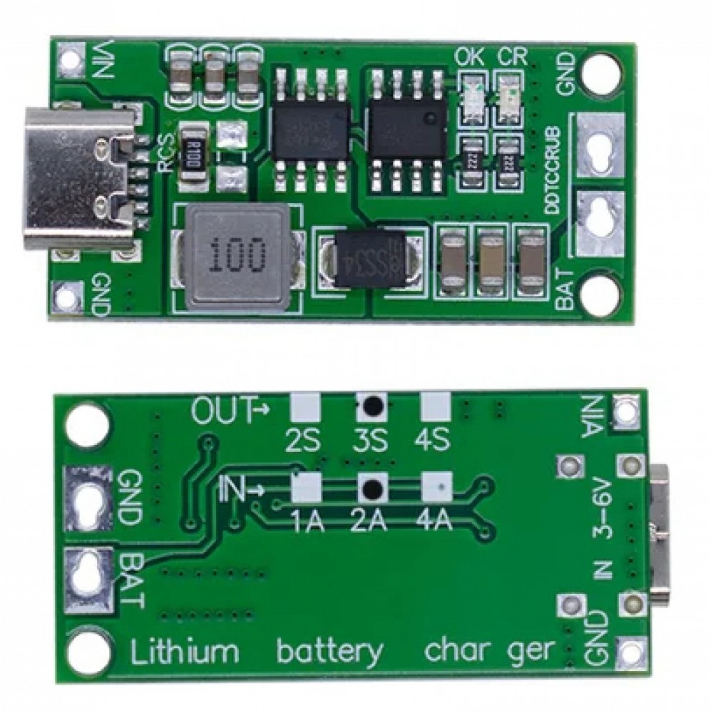 Li-ion зарядний модуль, 3S Li-ion зарядка, зарядка 3S 2А, модуль зарядки батарей, Type-C зарядка, модуль для 18650, зарядний пристрій 3S, літієвий зарядний модуль, 3-6V зарядний модуль, електронний модуль для батарей, потужність зарядного модуля 25.2W