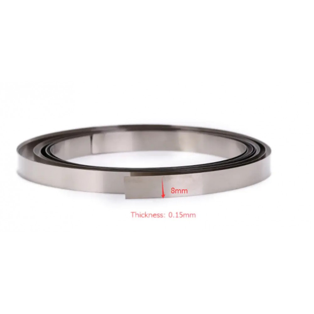 Нікельована стрічка 0.15x8 мм призначена для з’єднання літієвих акумуляторів методом точкового зварювання. Використовується у складанні батарейних збірок, акумуляторних блоків та електронних пристроїв. Має сталеву основу з нікельованим покриттям, що забезпечує корозійну стійкість та стабільну провідність.