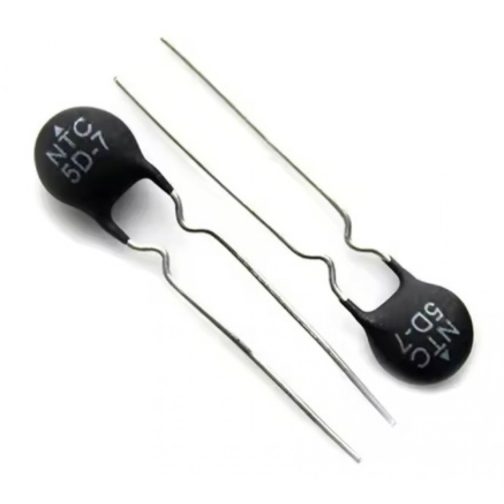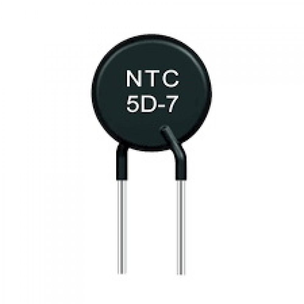 MF72 5D-7 є потужним NTC термістором, призначеним для обмеження імпульсних струмів при ввімкненні електричних пристроїв. Цей термістор виготовлений із кераміки на основі оксидів перехідних металів і має негативний температурний коефіцієнт, що дозволяє йому знижувати опір при нагріванні. Завдяки цьому він ефективно обмежує пускові струми, захищаючи електронні компоненти від пошкоджень.