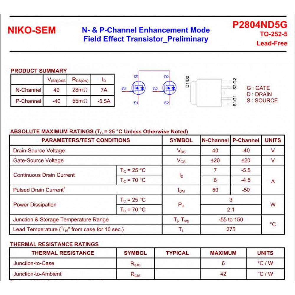 Транзистор P2804ND5G TO252-5