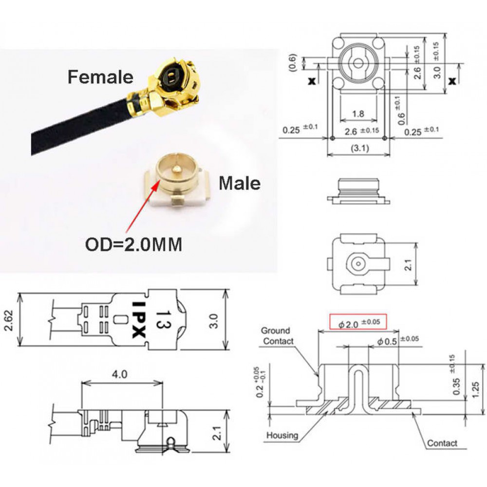 Перехідник гніздо SMA jack - U.FL IPX RF 1.13 Характеристики Сторона 1 SMA-jack Сторона 2 U.FL (IPX) Покриття центральних контактів золотом Марка кабелю RG-178 Хвильовий опір 50 Ом Втрати до 0.2 дБ Д... Читати далі...