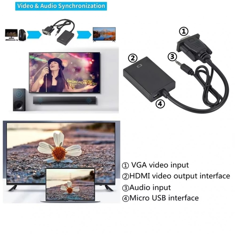 - Тип: VGA на HDMI з аудіо та живленням через USB