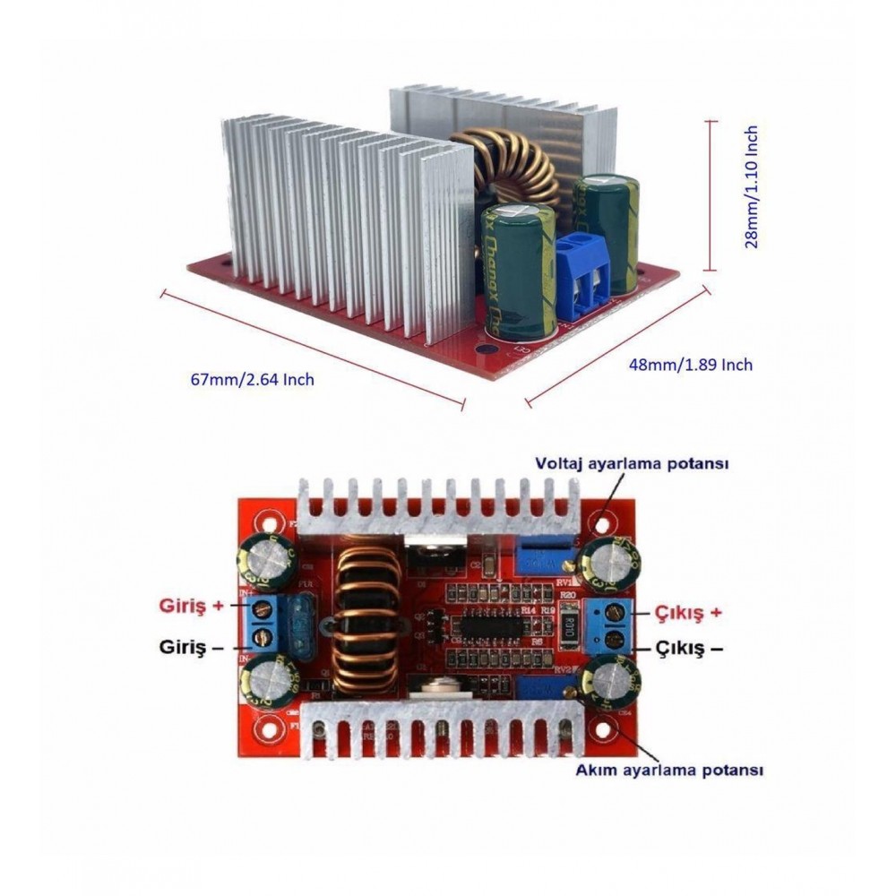 Підвищуючий модуль 400W з регулюванням струму та напруги, завдяки своїй функціональності має широку сферу застосування, наприклад: формування напруги автомобільних аудіо-підсилювачів; заряджання акумуляторів від дже... Читати далі...