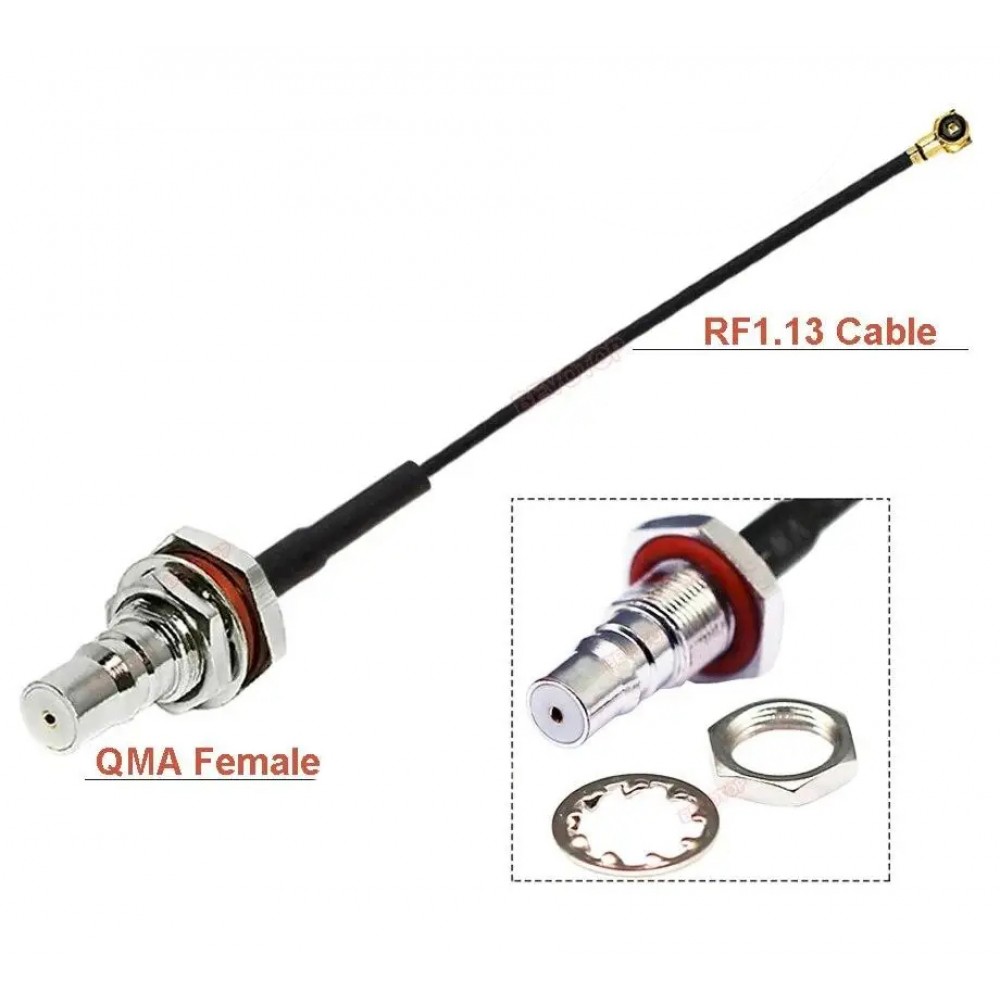 Пігтейл QMA – U.FL (IPX) призначений для підключення радіочастотних модулів до антен у пристроях із щільним компонуванням. З одного боку встановлений QMA-штекер із різьбовим кріпленням для надійної фіксації в корпусі пристрою, з іншого — ультракомпактний конектор U.FL (IPX) для підключення до модулів Wi-Fi, GSM, GPS, LoRa, LTE тощо. Пігтейл виконаний на високочастотному кабелі діаметром 1,13 мм, що забезпечує гнучкість і стабільну передачу сигналу при монтажі в обмеженому просторі. Довжина кабелю — 15 см.