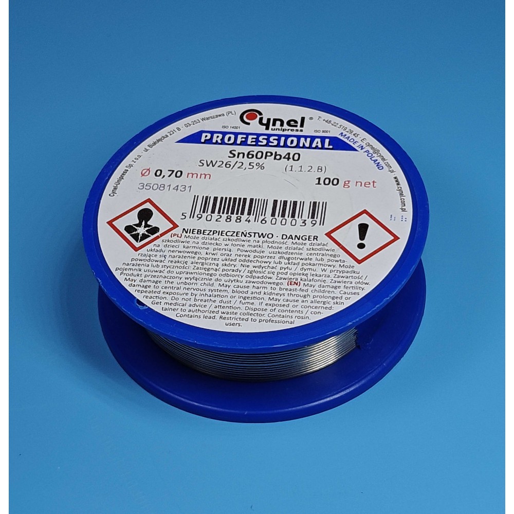 припій Cynel 0.7 мм, паяльний дріт Sn60Pb40, флюсовий припій 100 г, каніфольний припій, дріт з флюсом 2.5%, SW26 припій Cynel, паяльна проволока 60/40, професійний припій Cynel, припій для електроніки, паяльна котушка Cynel, припій для мікросхем, припій для точного паяння, припій у бухті 100 г, дріт Cynel для монтажу, припій для плат, флюсовий дріт Sn60Pb40, припій з каніфоллю, паяльний сплав 0.7 мм, Cynel SW26 2.5%, дріт з флюсом Польща