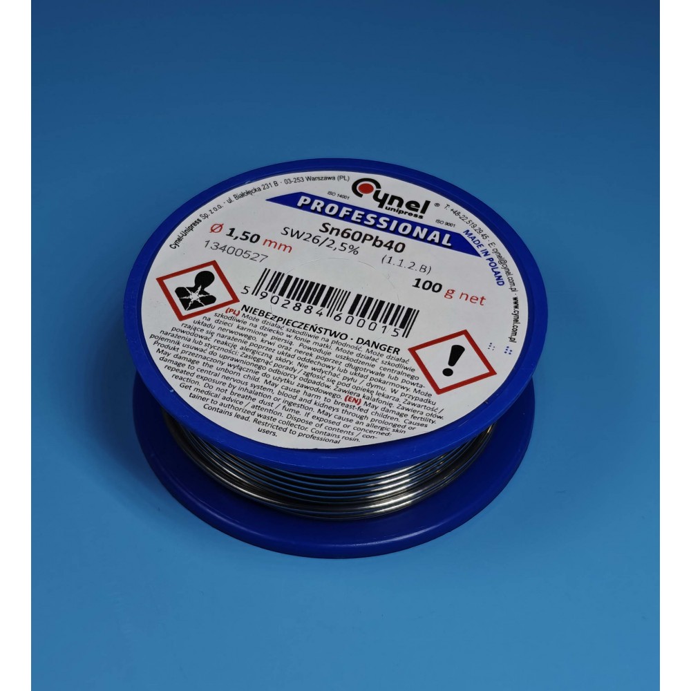 припій Cynel 1.5 мм 100 г, паяльний дріт Sn60Pb40, припій з флюсом 2.5% SW26, професійний припій Польща, паяльна проволока 60/40, флюсовий дріт Cynel, дріт паяльний 1.5 мм, припій для клем і роз'ємів, припій у котушці для електроніки, припій з каніфоллю, припій Cynel Sn60Pb40, паяльний дріт для електротехніки, флюсовий припій 60/40, Cynel дріт у бухті, паяльний сплав Польща, припій для масивних провідників, паяльна проволока з флюсом, припій для силової техніки, дріт паяльний Cynel 1.5 мм