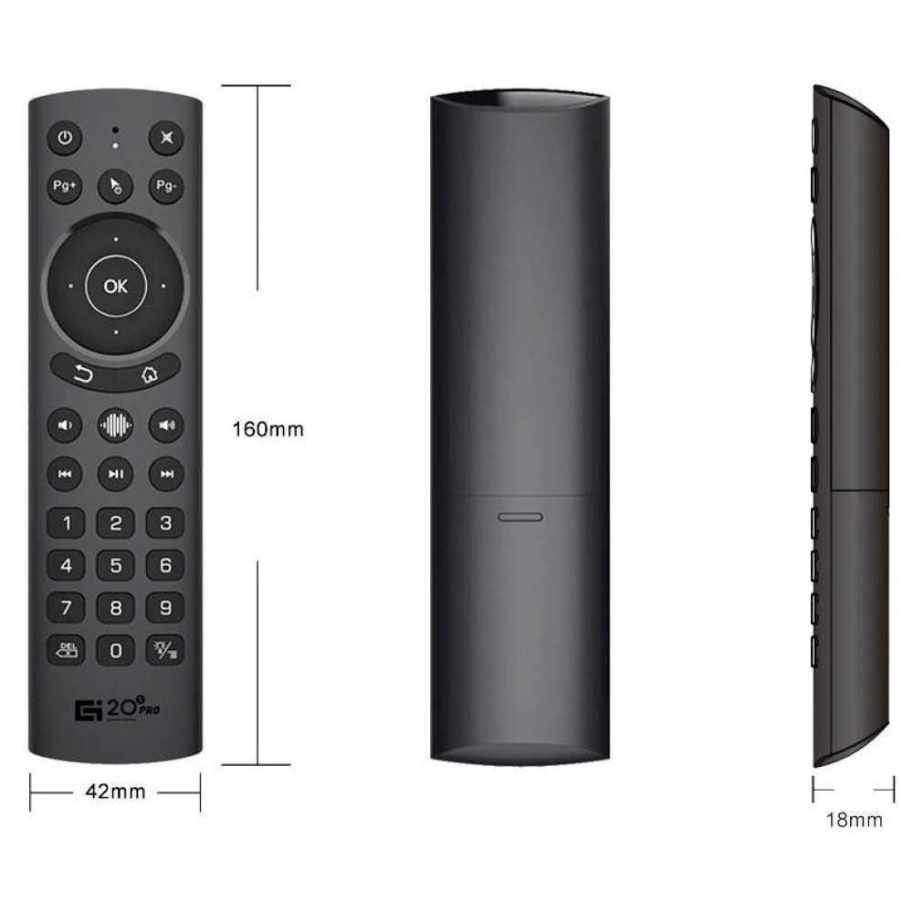 Аеро пульт G20S Pro - це подальший розвиток G20S. Різниця у наявності підсвітки та цифрових кнопок . G20 - це версія без гіроскопа, тобто в режимі миші, якщо він потрібен, курсор управляється за допомогою D-pad. G20S - це версія з гіроскопом, тобто з функцією аеромиші.