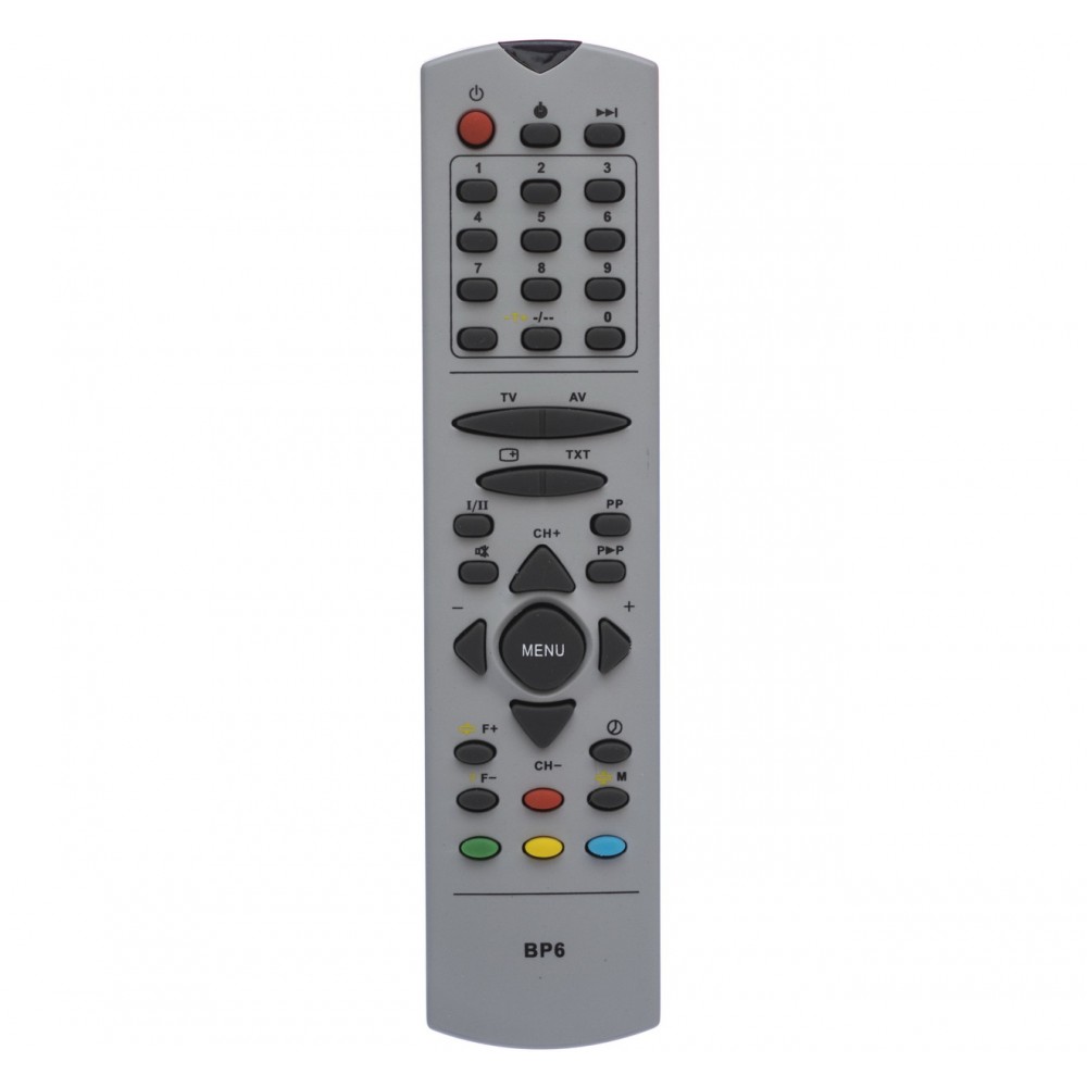 Пульт Philips BP-6 - інфрачервоний пульт дистанційного керування, призначений для телевізорів Philips. Виконаний у сірому кольорі, має стандартне розташування кнопок для зручного доступу до функцій телевізора: керування гучністю, перемикання каналів, навігація в меню.