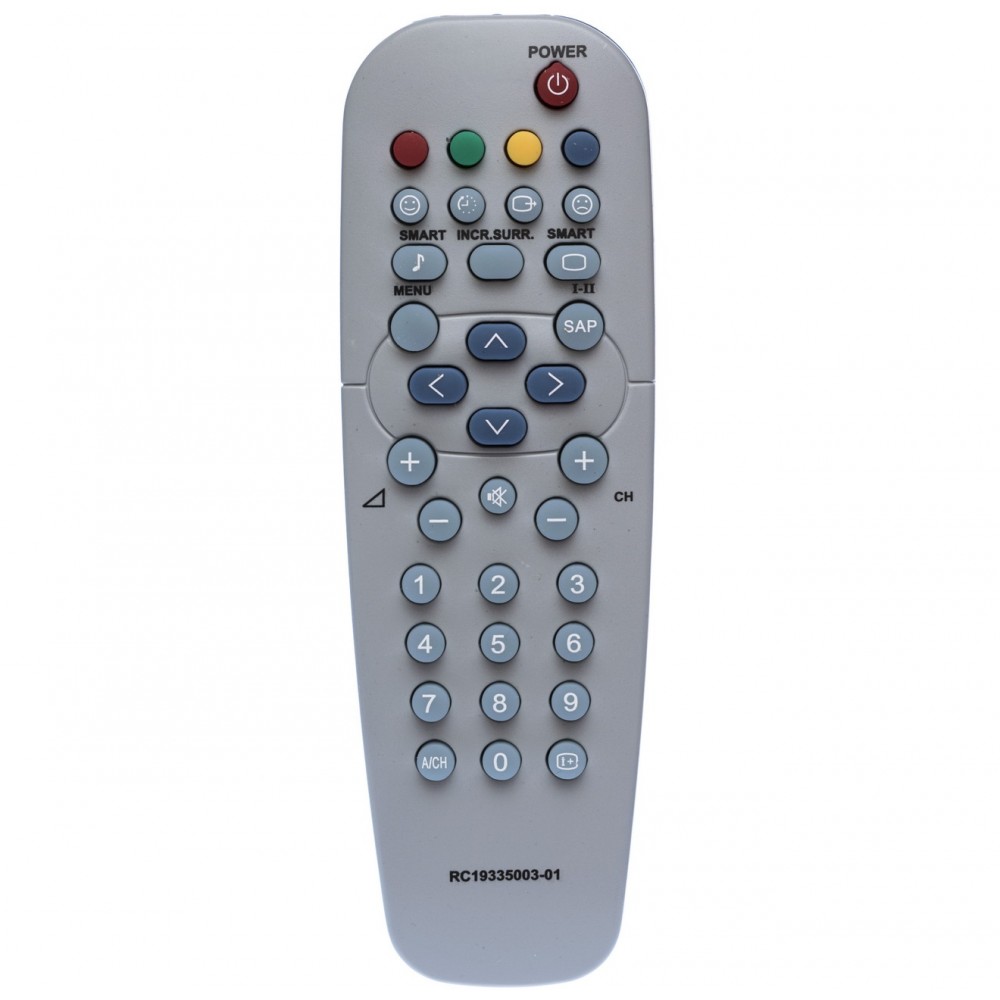 Пульт Philips RC-19035003 - інфрачервоний пульт дистанційного керування, призначений для телевізорів Philips. Має класичний сірий корпус, підтримує всі основні функції управління телевізором, включаючи перемикання каналів, налаштування звуку, меню та джерела сигналу.