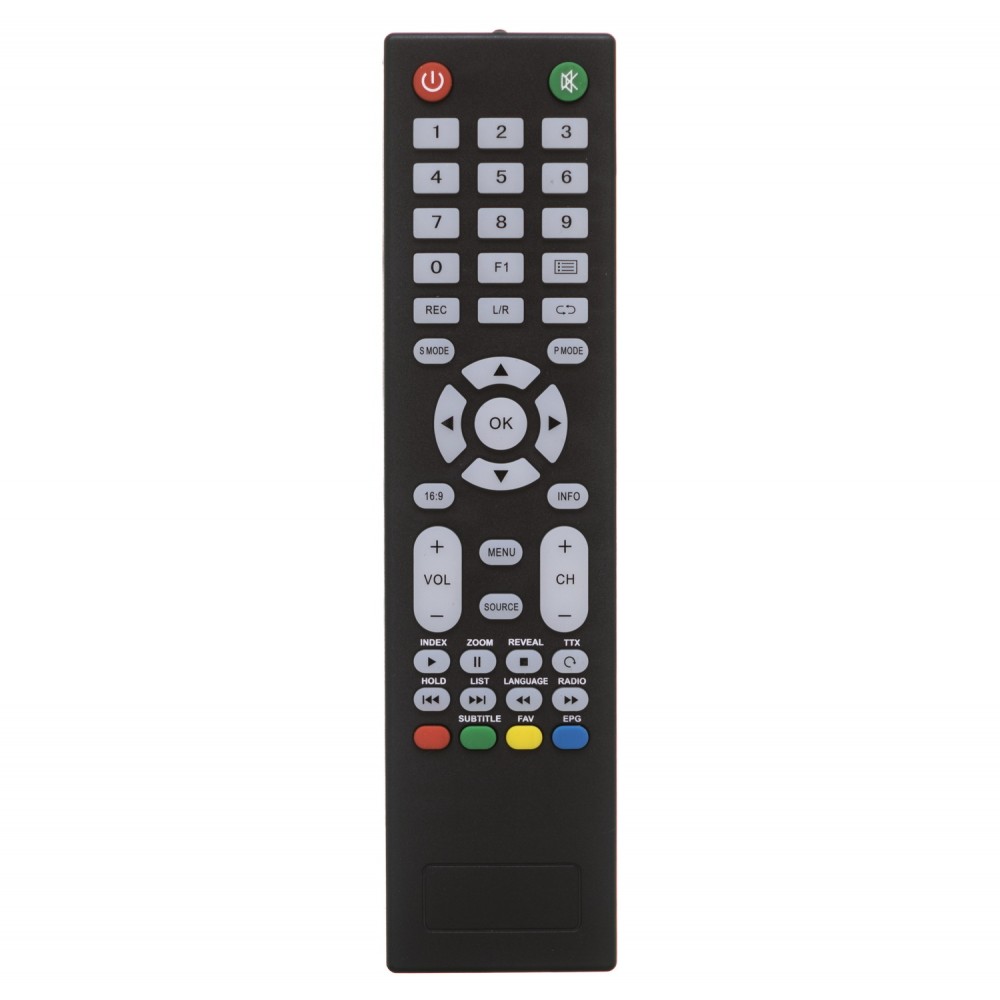 - Кількість кнопок: стандартний набір функцій (живлення, гучність, перемикання каналів, меню, цифри тощо)