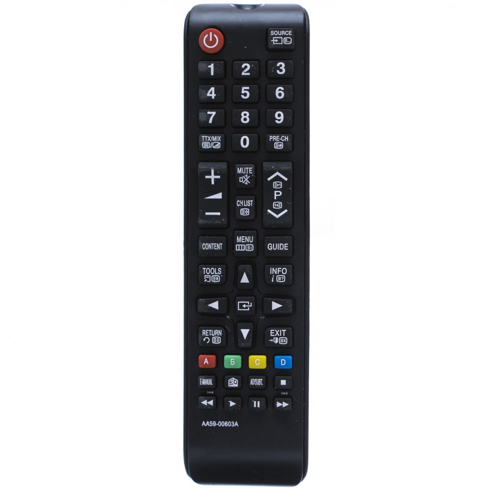 Samsung AA59-00603A – інфрачервоний (IR) пульт дистанційного керування, призначений для телевізорів Samsung. Він підтримує всі необхідні функції для керування телевізором, включаючи перемикання каналів, регулювання гучності, вибір джерела сигналу, доступ до меню та Smart Hub. Пульт працює без додаткового налаштування – достатньо вставити 2 батарейки AAA.