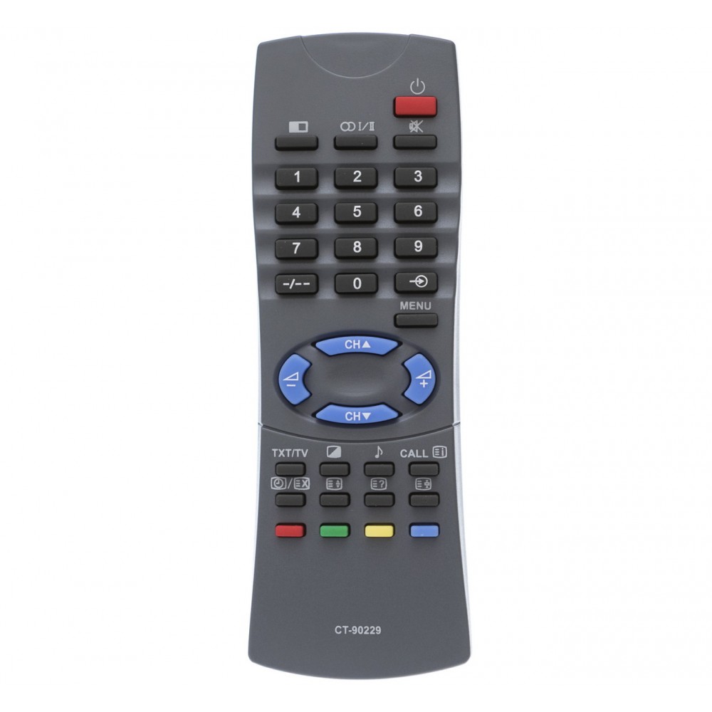 Пульт Toshiba CT-90229 - інфрачервоний пульт дистанційного керування, спеціально розроблений для телевізорів Toshiba. Завдяки ергономічному сірому корпусу та повному набору функціональних кнопок, він забезпечує комфортне керування основними функціями телевізора: зміна каналів, гучність, доступ до меню та інших налаштувань. Працює від двох батарейок типу AAA.