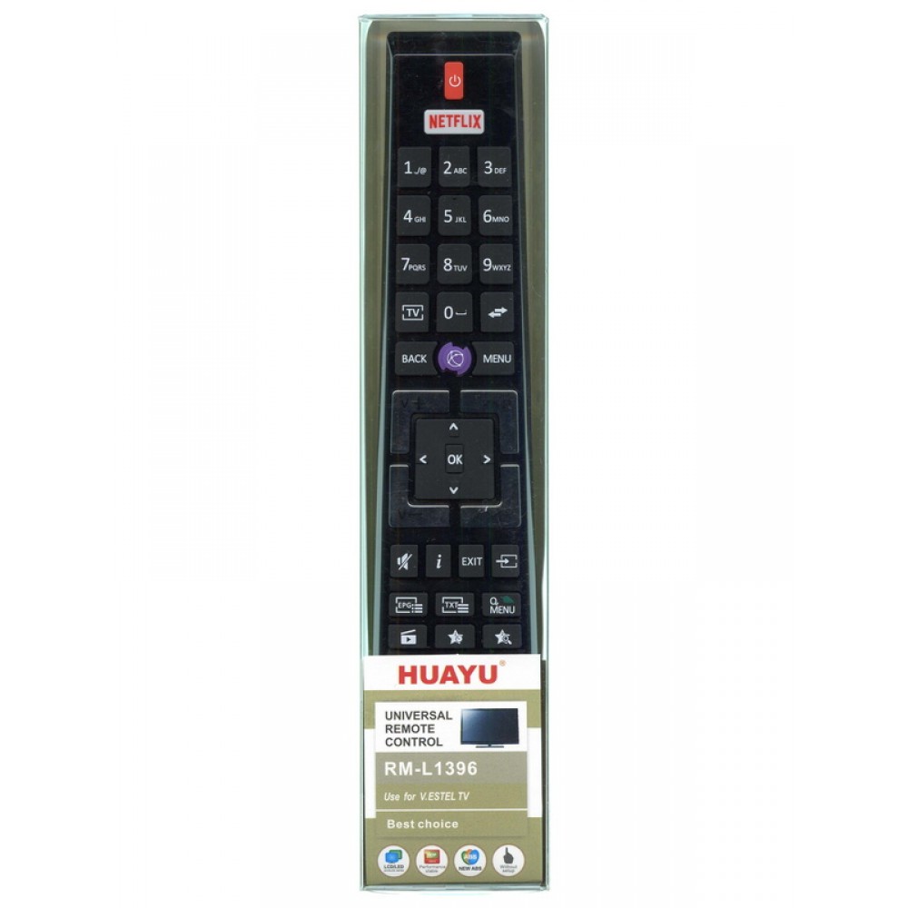 універсальний пульт Vestel, пульт до телевізора Vestel, дистанційний пульт RM-L1396, пульт для Smart TV Vestel, пульт з кнопкою Netflix, інфрачервоний пульт Vestel, заміна рідного пульта Vestel, пульт HUAYU RM-L1396, пульт для телевізора Hyundai, пульт для телевізора Finlux, пульт Vestel 17MB, пульт без налаштування, пульт з програмованим кодом, пульт до Horizon TV, пульт до JVC LED телевізора, пульт для SEG TV, пульт Regal сумісний, пульт для телевізора F&U, пульт дистанційного керування для Vestel, пульт з підтримкою AV