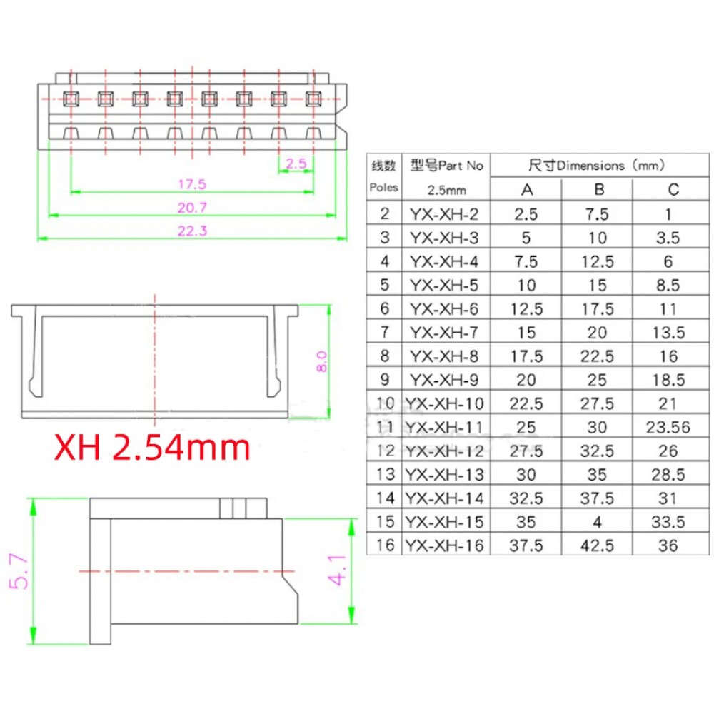 - Стандарт: JST XH2.54