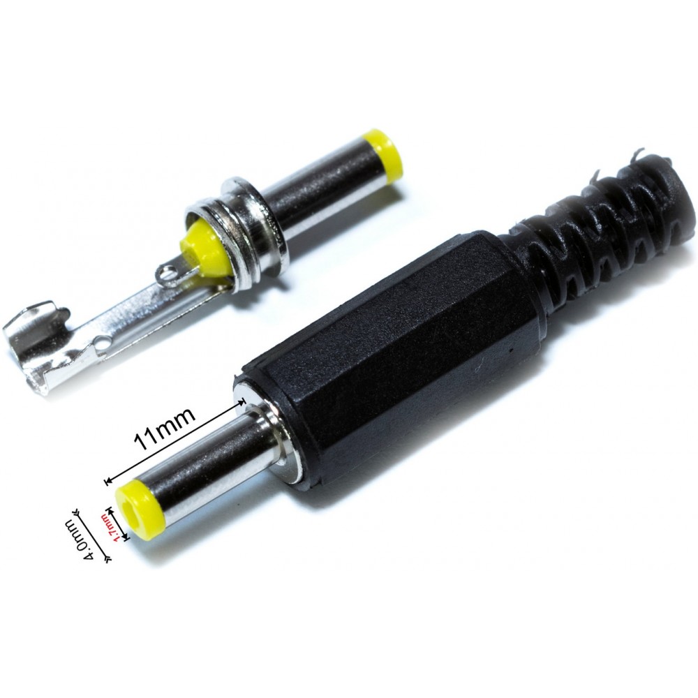 Штекер DC 1,7x4,0mm х 11mm - стандартний роз'єм для підключення живлення до електронних пристроїв. Завдяки своїм компактним розмірам і надійному контакту, цей роз'єм ідеально підходить для використання у ноутбуках, блоках живлення, аудіопристроях, роутерах та іншій електроніці. Жовте маркування зазвичай вказує на специфічні параметри живлення, що робить його зручним для правильного вибору користувачем.