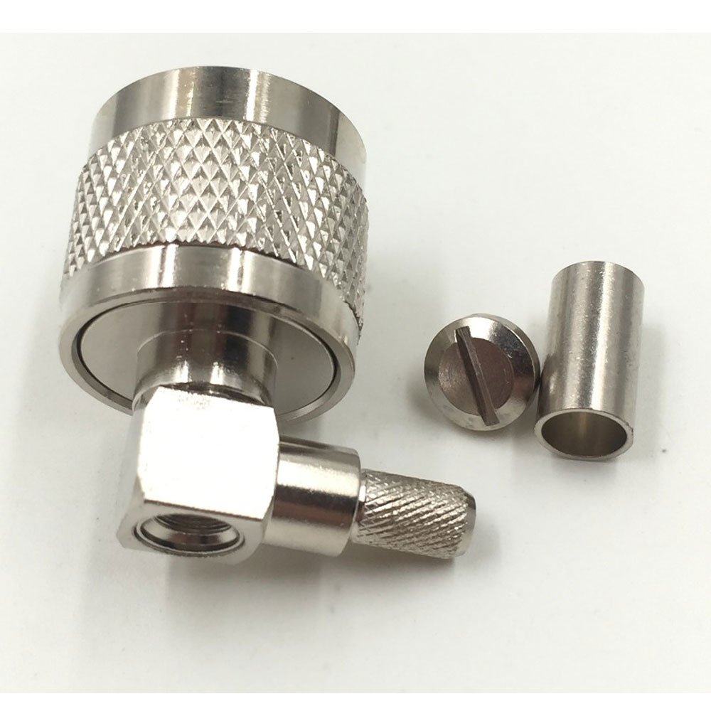 Штекер UHF (тип PL-259) обтискний із кутовим виходом 90° призначений для приєднання до коаксіального кабелю типу RG-58. Така конструкція особливо зручна для встановлення в обмеженому просторі або в місцях, де потрібен бічний вихід кабелю. Корпус виготовлений з металу з нікельованим покриттям, що забезпечує довговічність та захист від корозії. Контактна частина виконана з латуні з позолотою, що забезпечує стабільний сигнал та низький рівень втрат.