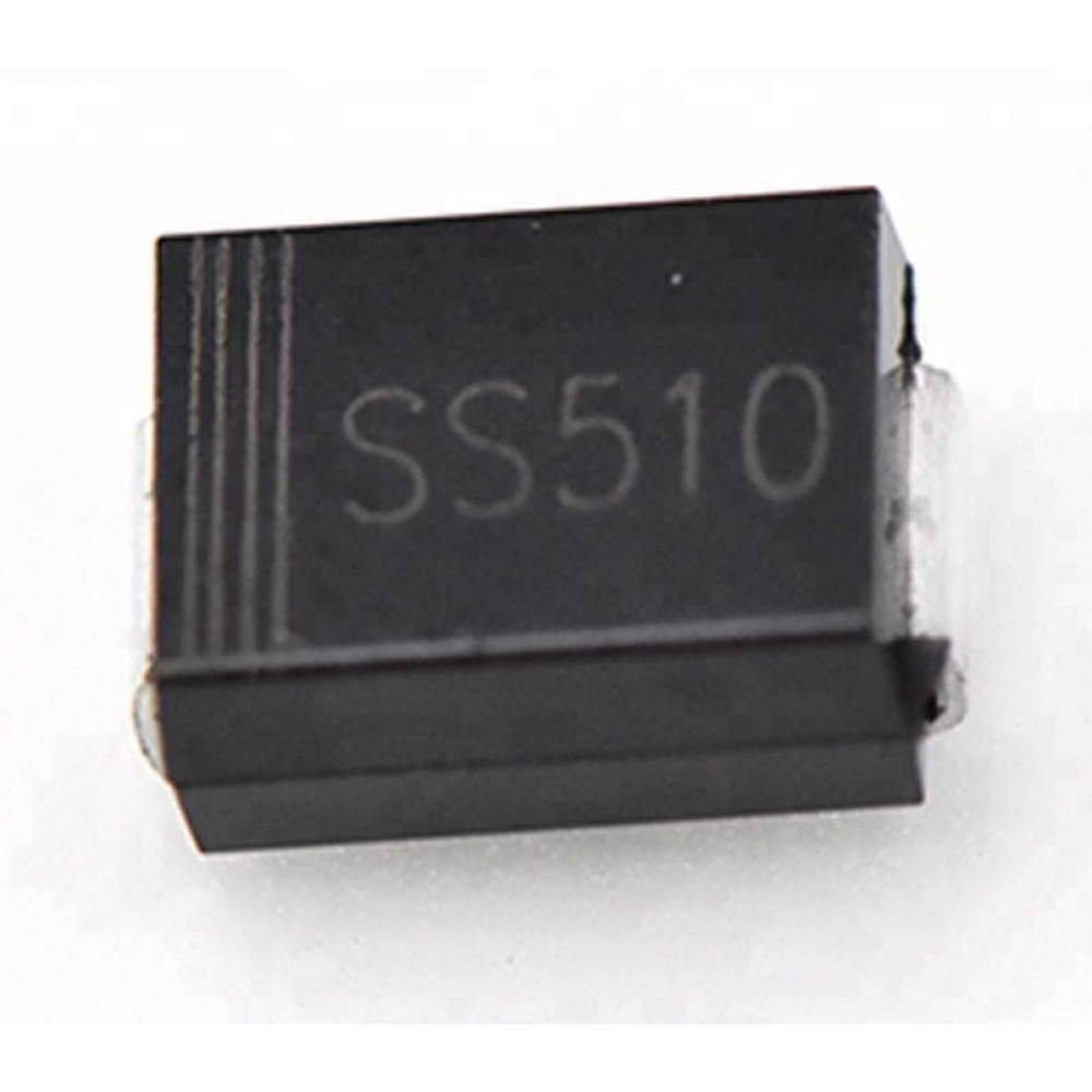 SS510, Шотткі-діод, діод для випрямлення, високочастотний діод, діод з низьким падінням напруги, полярний захист, SMC корпус.