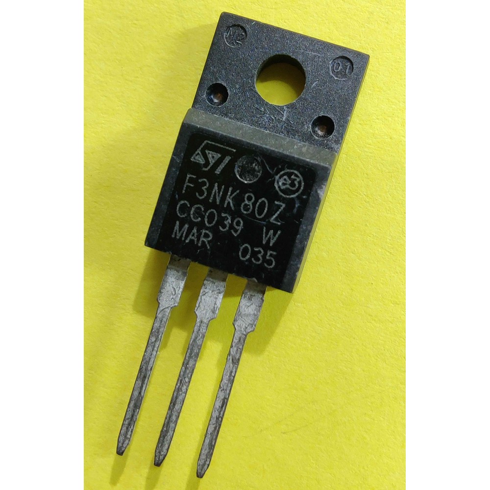 MOSFET, n-канальний транзистор, 800 В, 2.5 А, STF3NK80Z, SuperMESH, високовольтний транзистор, комутаційний транзистор, Zener захист, енергозбереження, STMicroelectronics, блок живлення, стабілізатор, імпульсний перетворювач.