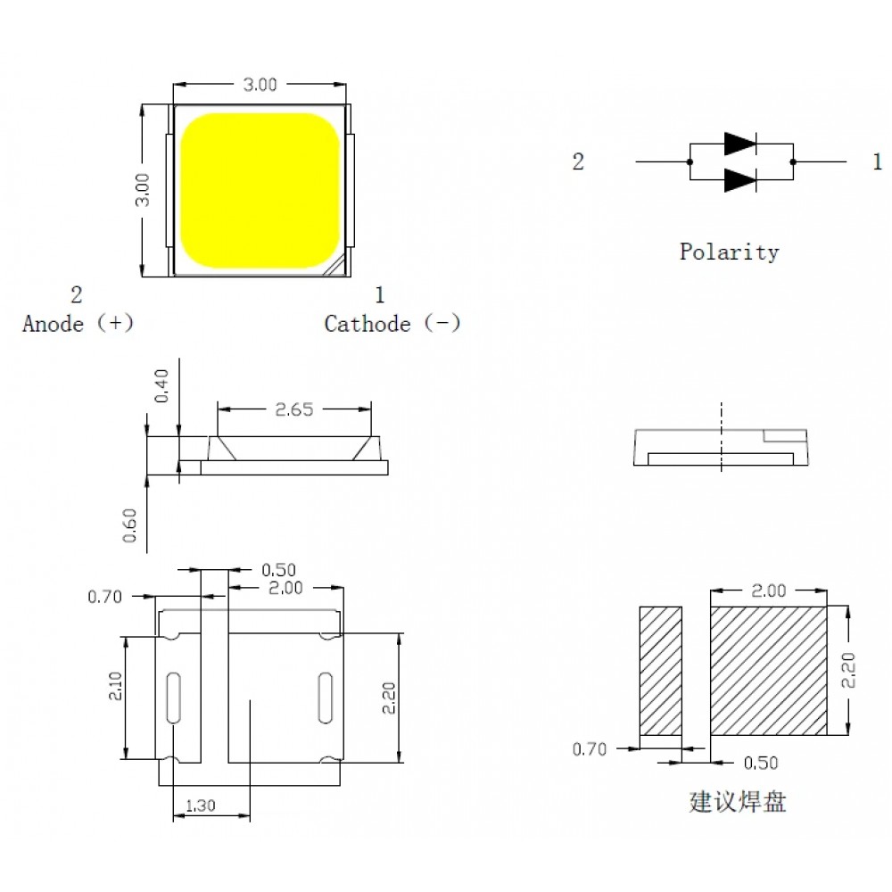 - Тип розміру: 3030 (3.0 мм x 3.0 мм).