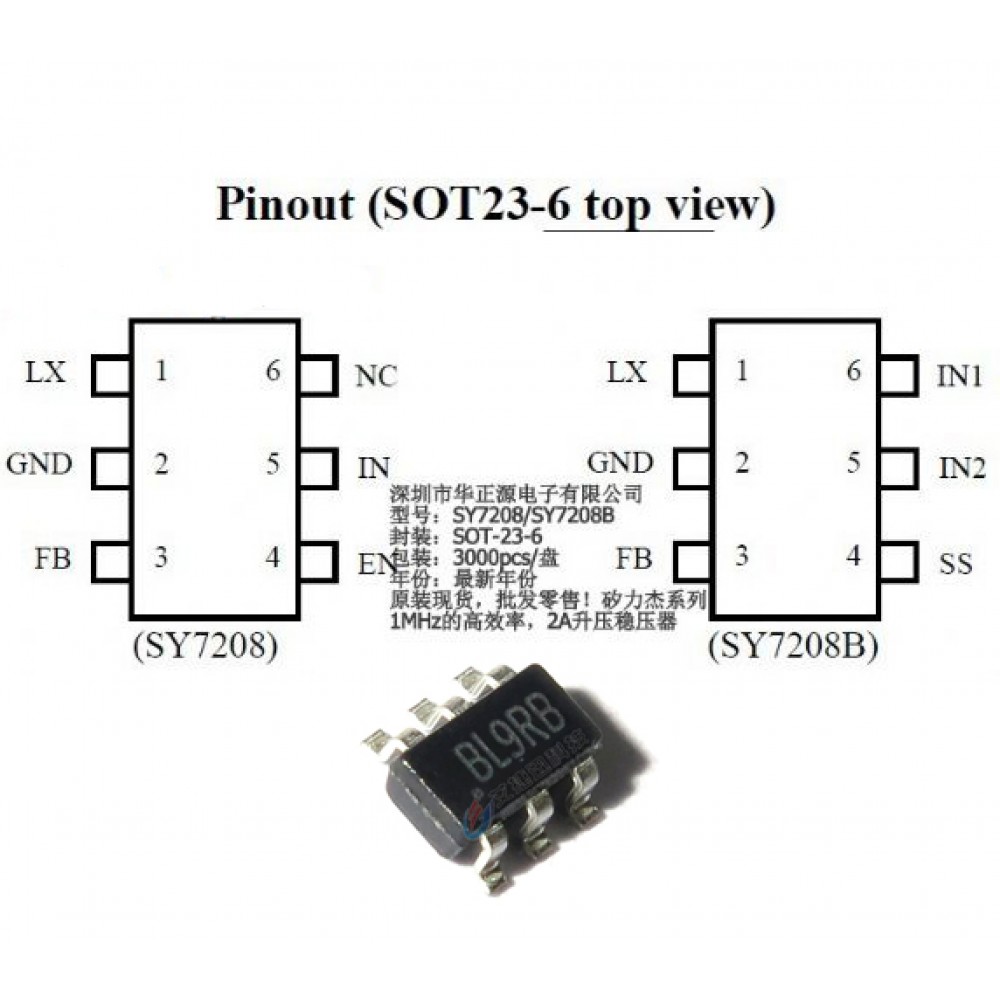 SY7208 — це високоефективний підвищуючий перетворювач DC-DC з частотою перемикання 1 МГц і можливістю подавати струм до 2А. Він розроблений для загальних підвищуючих застосувань, таких як драйвери світлодіодів (WLED) і мережеві карти. Модель SY7208B має додатковий захист від перенапруги на вході. -